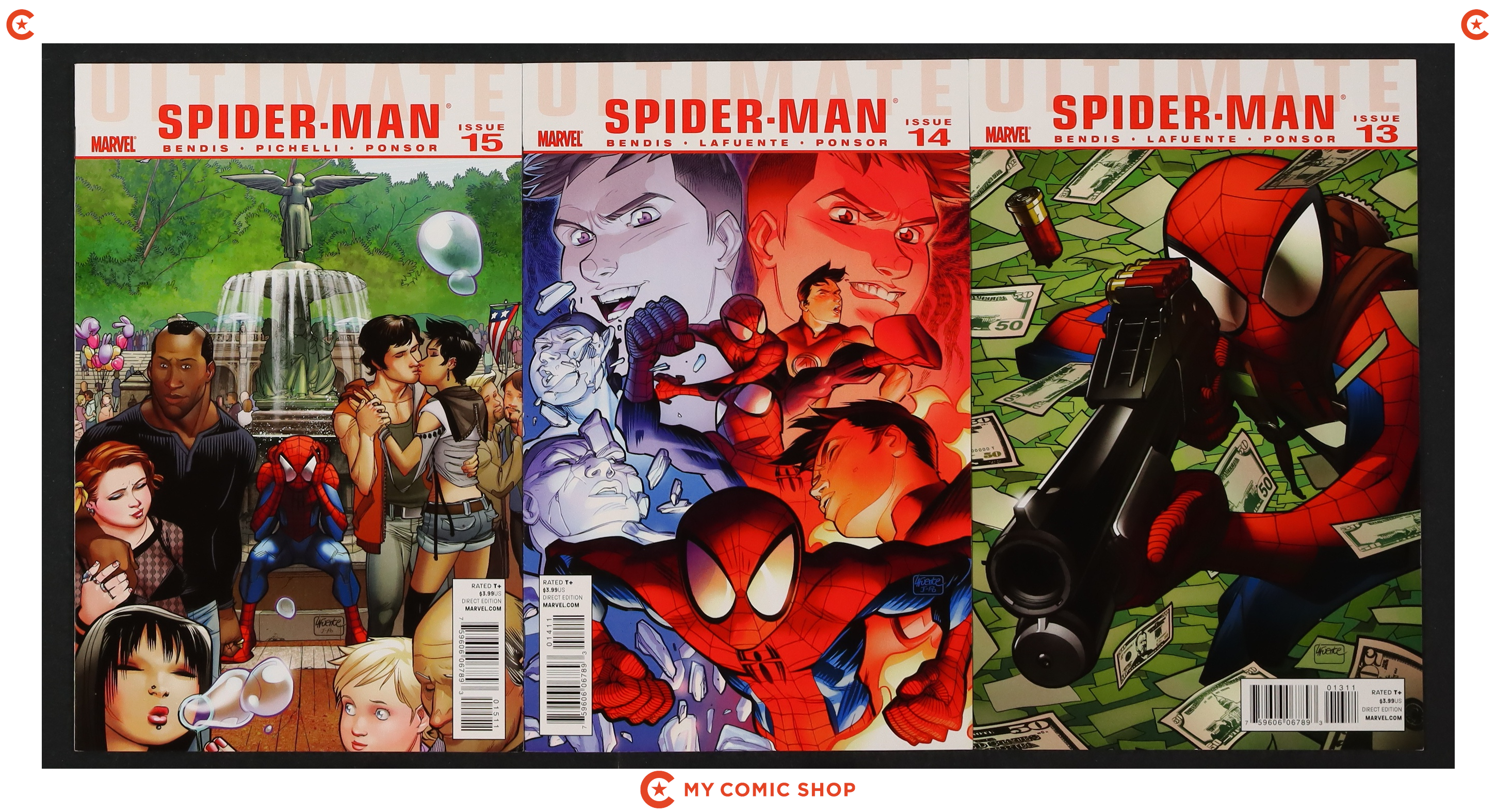 Issues 1A, 2-9, 11, and 13-15 of Ultimate Spider-Man (2009 2nd Series). Most will grade in the VF to FN+ range.