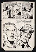 A pivotal page from this harrowing issue! Opening with an extended sequence that sees Alicia Masters making her way out of building and into the streets of New York following a trail of destruction, she's finally noticed by a police officer who tells her of the warrior rampaging through the city- a warrior she knows to be Ben Grimm, The Thing! Absolutely beautiful work from Sinnott on this page with clean, assured inks that perfectly capture the despair on Alicia's face in 2/3 splash panel. Pencil and ink on Marvel Comics art board. 11" x 16 1/2".