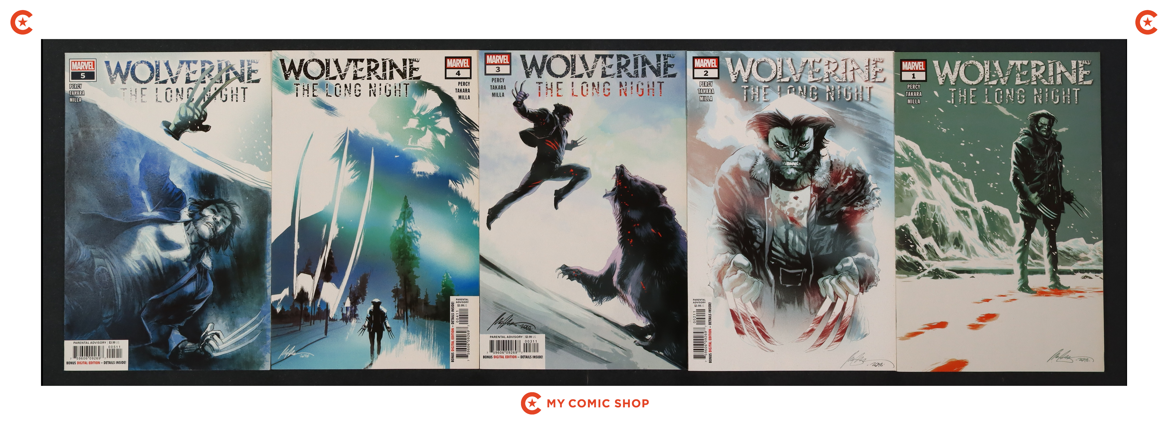 Issues 1A and 2-5 of Wolverine The Long Night (2018 Marvel). Most will grade in the NM to VF range with 1A grading FN.