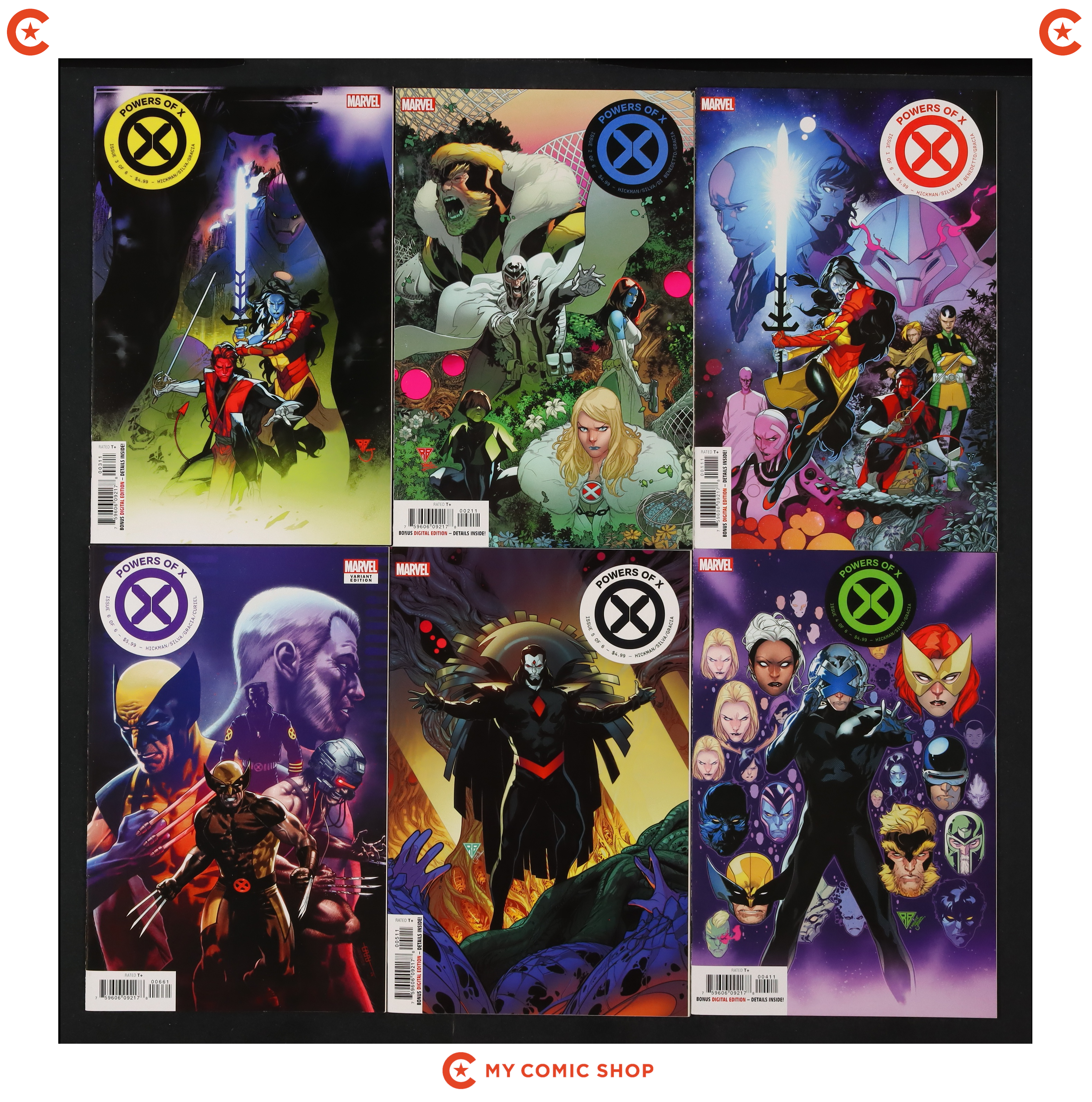 Issues 1A-5A and 6E of Powers of X (2019 Marvel). Most will grade in the NM to VF range.