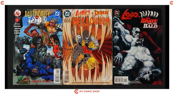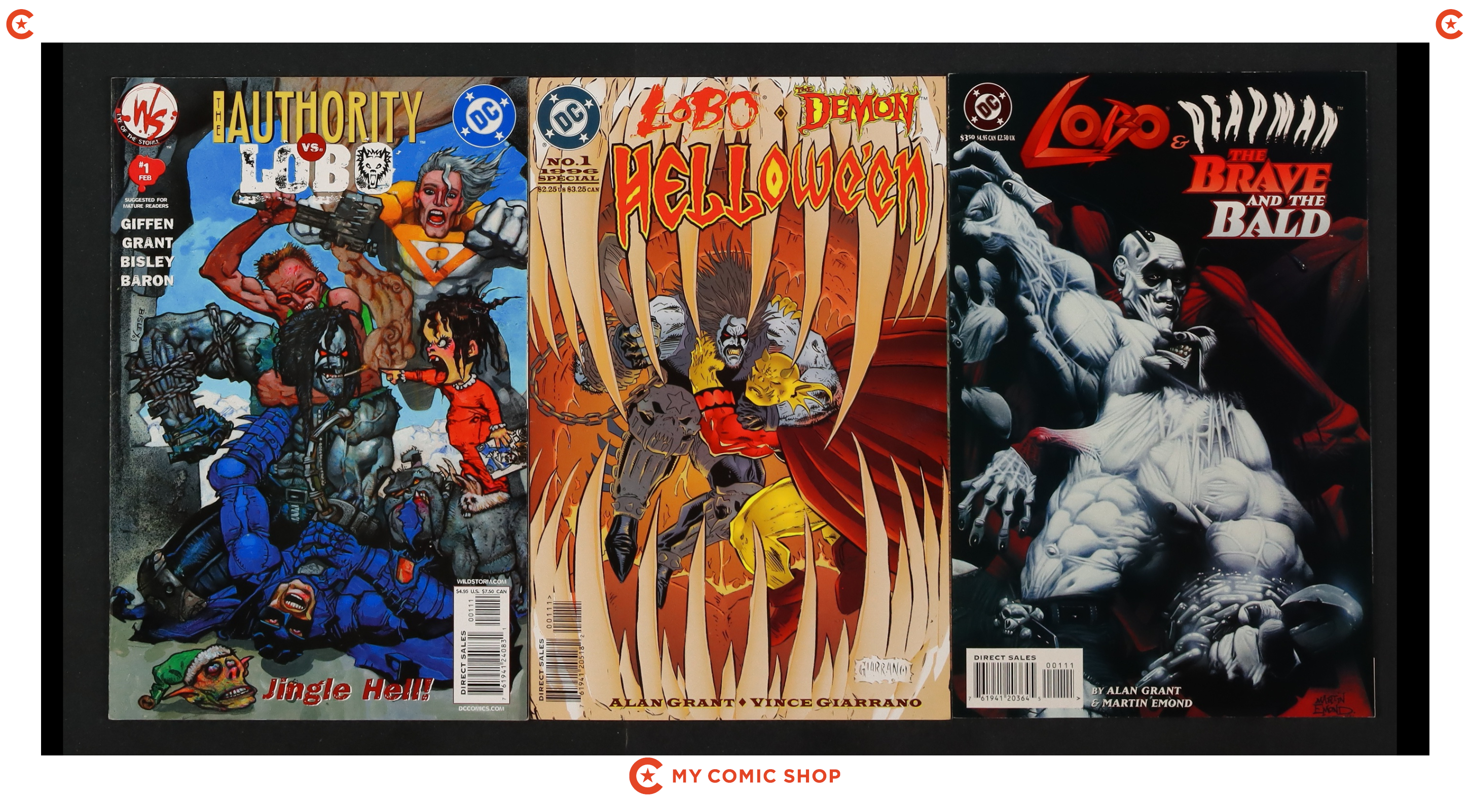 Issues 1A.D, 2D, 3, and 4 of Lobo (1990 1st Series DC); 1 of Lobo Deadman The Brave and the Bald (1995); 1 of Lobo Demon Helloween (1996); and 1 of Authority Lobo Christmas Special (2004) Jingle Hell. Most will grade in the FN range.