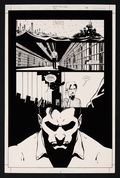 An absolutely haunting page, beautifully laid out that emphasizes the cold, institutional atmosphere of Blackgate Prison and punctuates it with a dramatic closeup of Bruce Wayne, bathed in shadow as he awaits a lone visitor- Barbara Gordon. While Alfred and Dick try to figure out a way to Pencil and ink on DC Comics art board. 11" x 17".