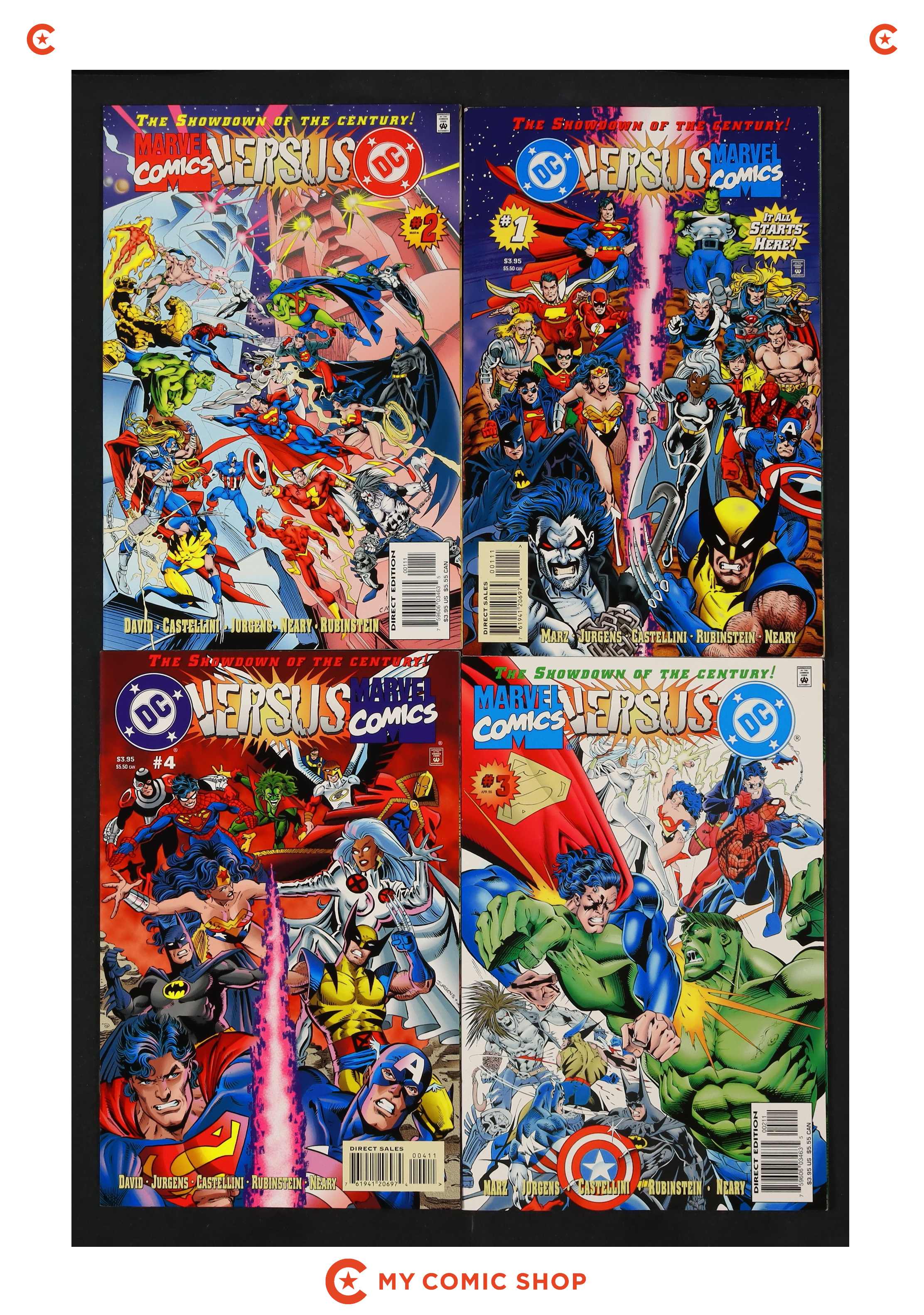Issues 1D-4D of Marvel vs. DC (1996). Most will grade in the VF to FN+ range.