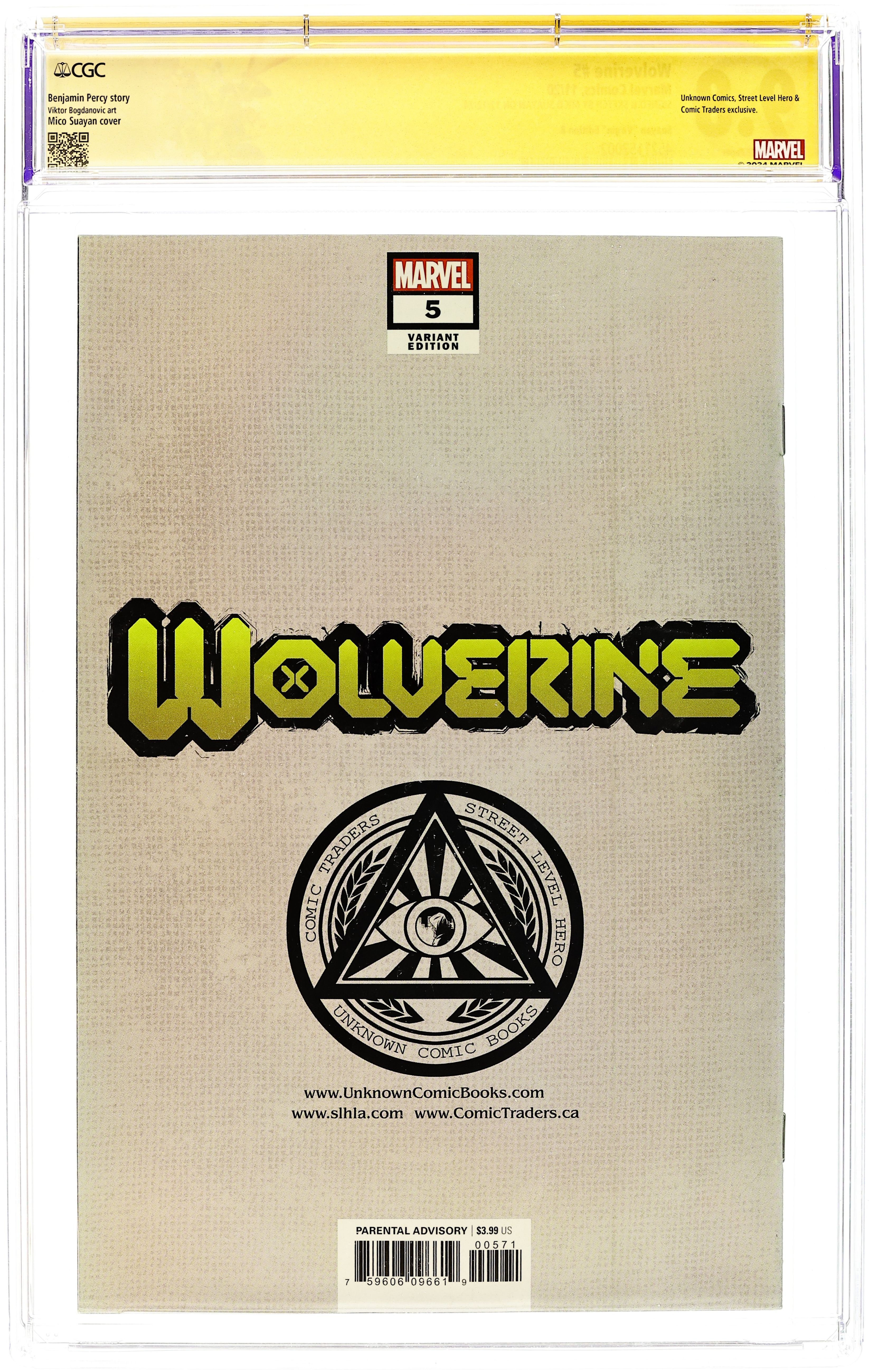 Ended Jul 22 2025 Winning Bid $167 Comics Illuminati (Unknown Comics, Comic Traders, and Street Level Hero) Exclusive variant cover by Suayan. Written by Ben Percy. Art by Viktor Bogdanovic. Cover by Adam Kubert. BLOOD CLOCKS! In the snowbound darkness of the north, Wolverine is the prisoner of Dracula. By forming an unlikely alliance, Logan fights back. Stakes, claws, tricked-out snowmobiles and wintry mayhem await you. 28 pages, full color. Parental Advisory Grade: CGC 9.8 explanation of grade Condition: Used (collectible)