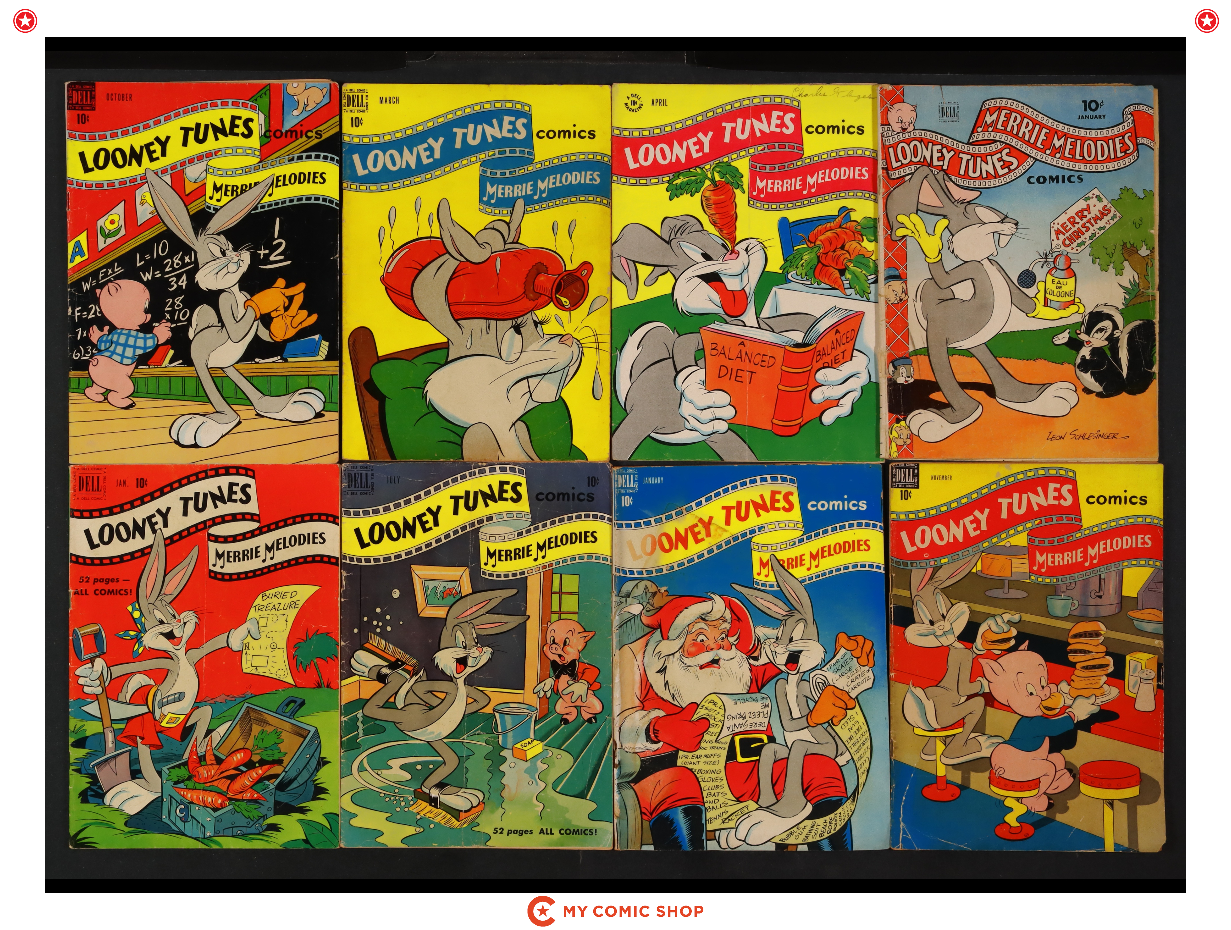 Issues 39, 66, 77, 84, 85, 87, 105, 111, 112, 115 of Looney Tunes and Merrie Melodies (1941-1962 Dell). Most will grade in the FR/GD to GD/VG range.