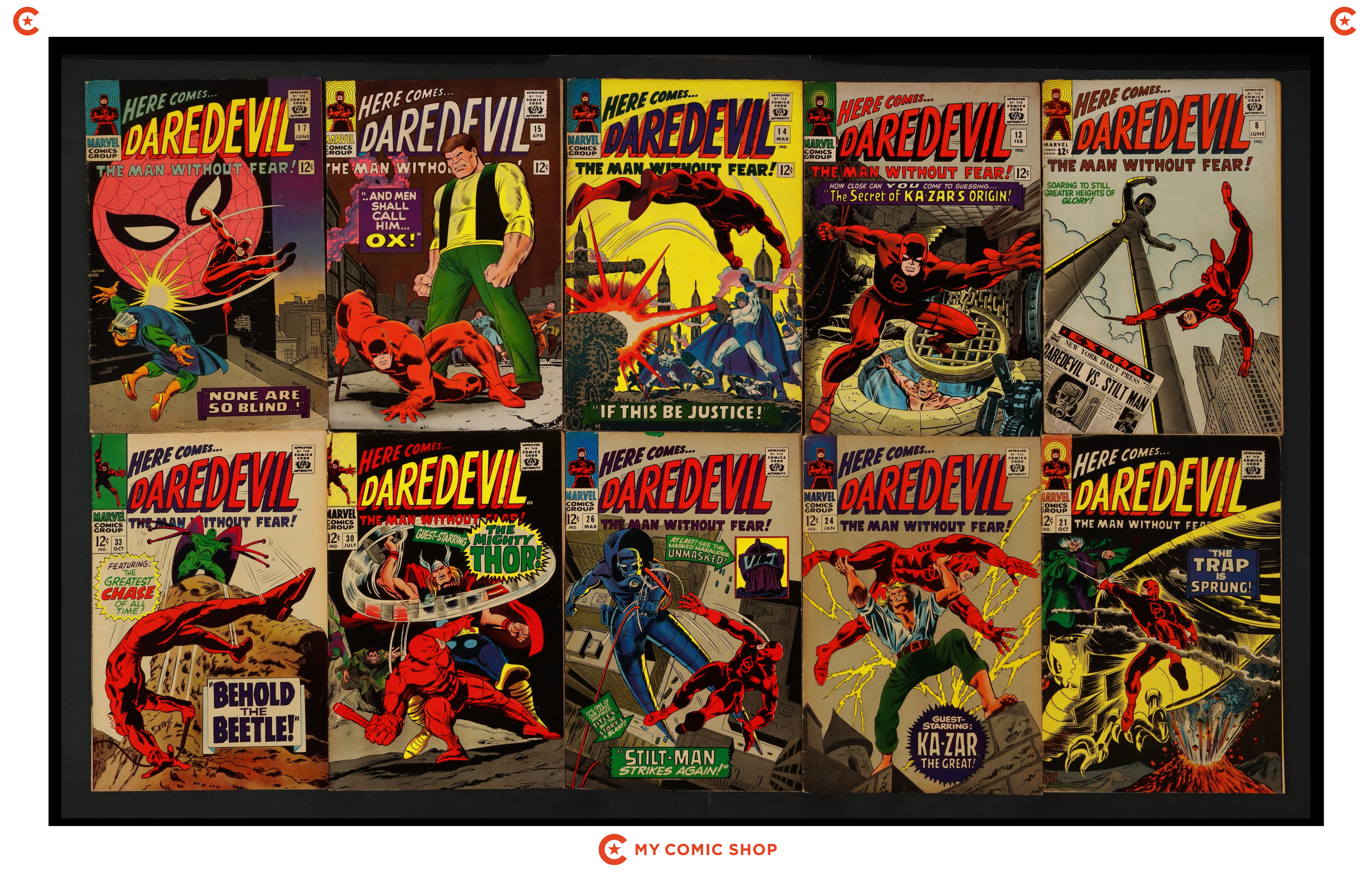 Issues 8, 13-15, 17, 21, 24, 26, 30, 33 of Daredevil (1964 1st Series). Most will grade in the GD/VG to FN range.