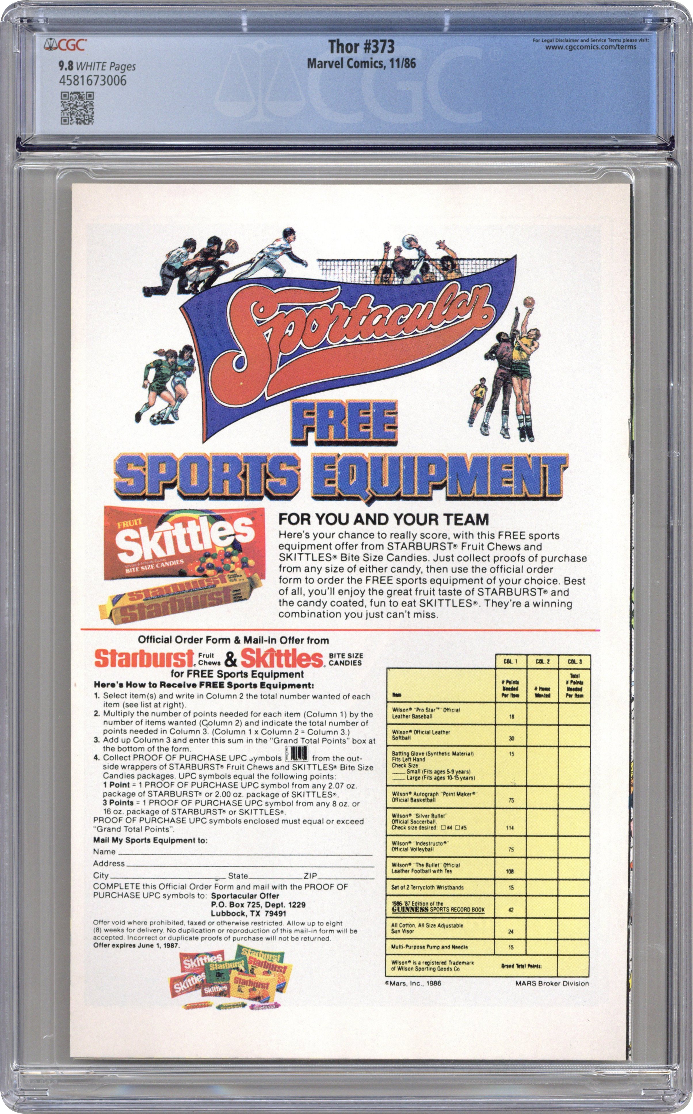 Thor (1962 Marvel 1st Series Journey Into Mystery) 373 CGC 9.8