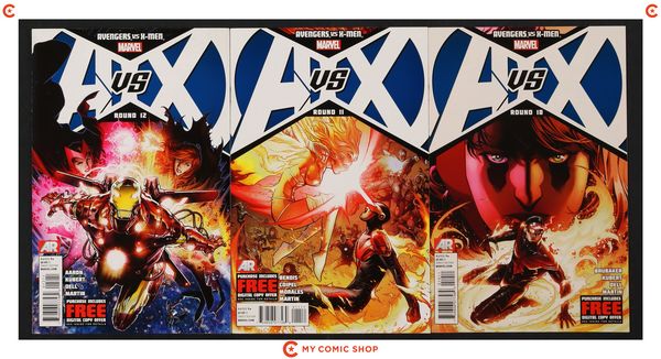 Issues 0A-12A of Avengers vs. X-Men (2012 Marvel). Most will grade in the FN range with a few grading VF.