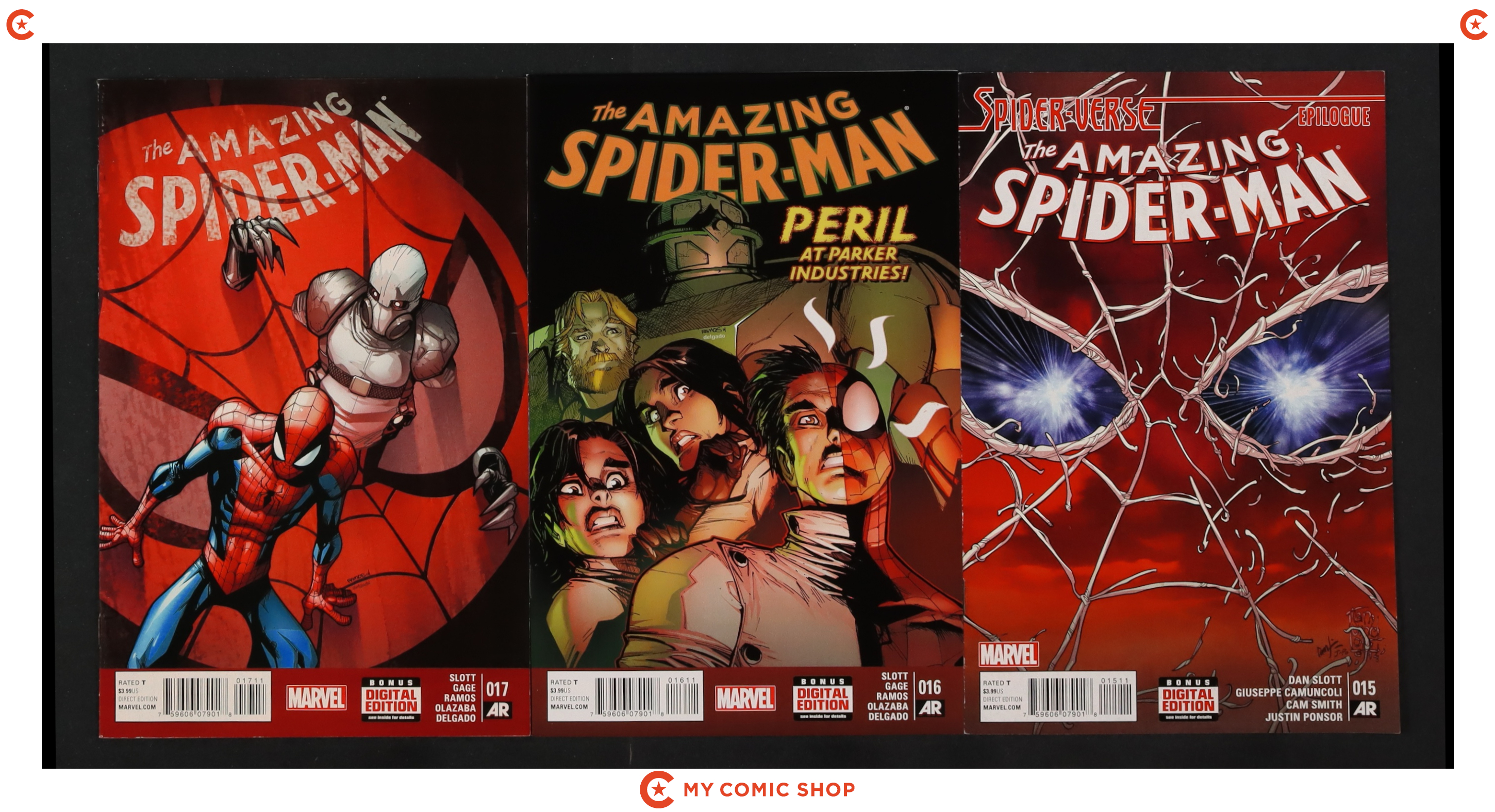 Issues 1.3A, 1.4A, 6A, 7A, 13A-17A of Amazing Spider-Man (2014 3rd Series). Most will grade in the VF to NM range.