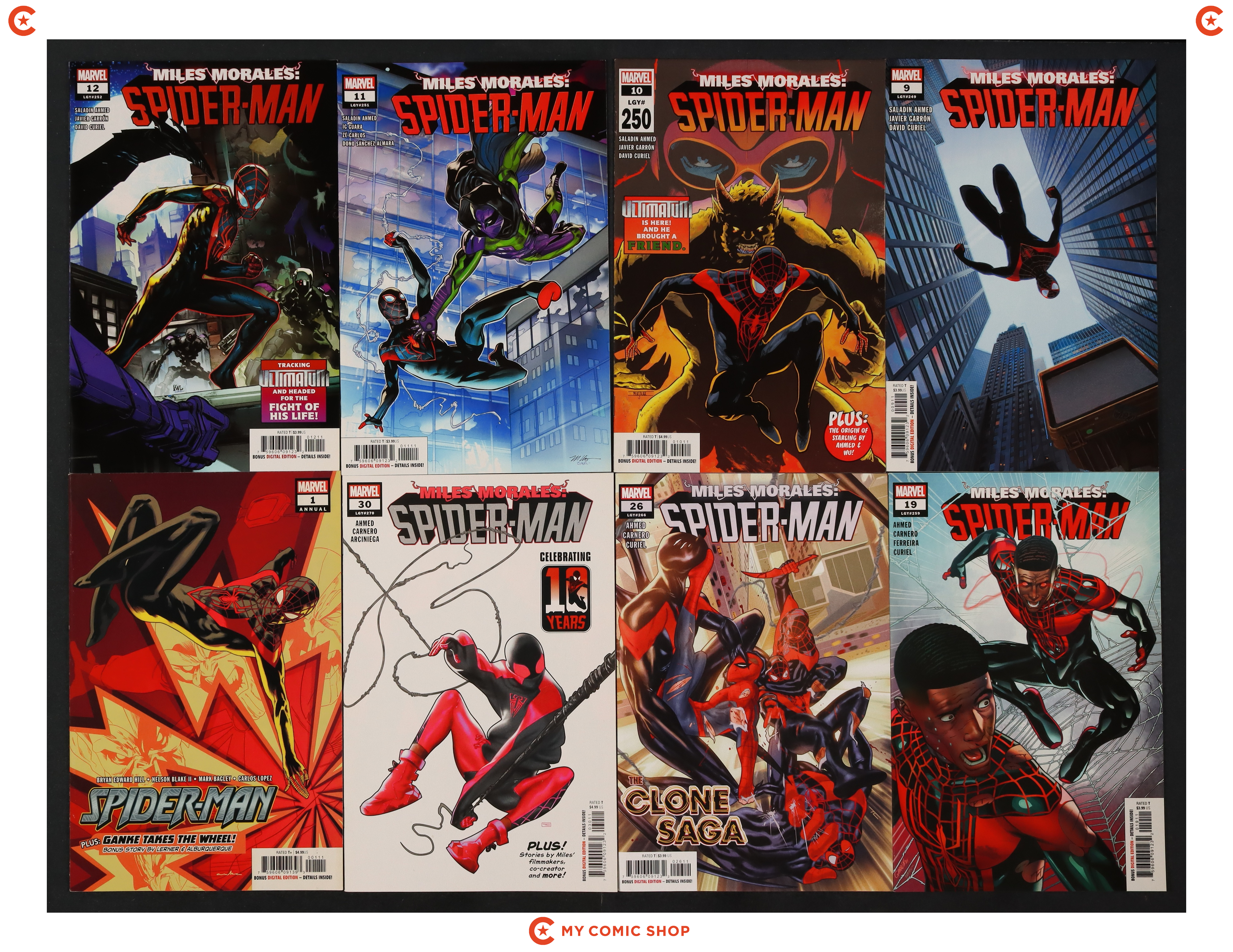 Issues 9A-12A, 19A, 26A, and 30A of Miles Morales Spider-Man (2019 Marvel); and 1A of Spider-Man (2017) Annual. Most will grade in the VF range with a couple grading FN.