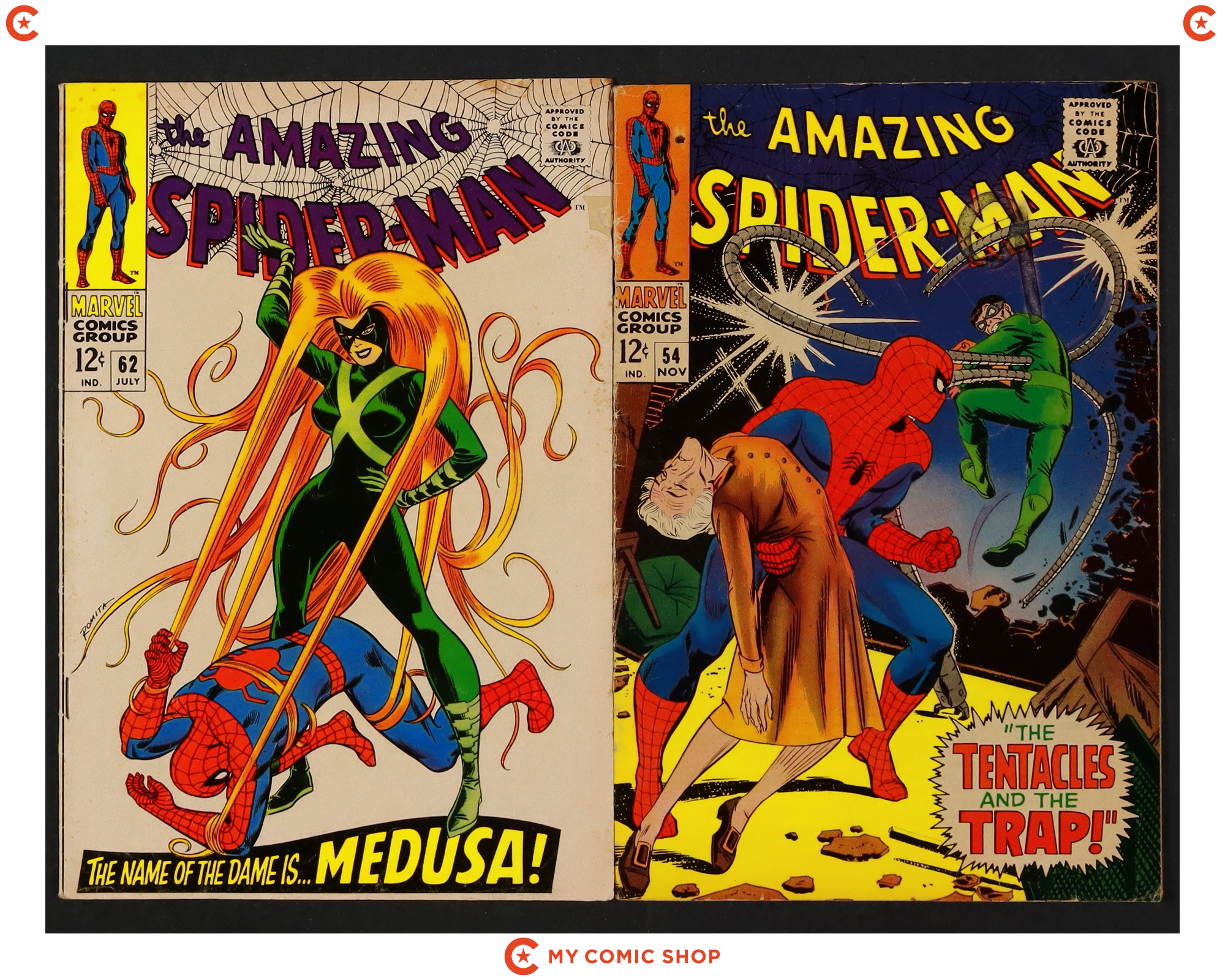 Issues 54 and 62 of Amazing Spider-Man (1963 1st Series). Most will grade in the VG range.