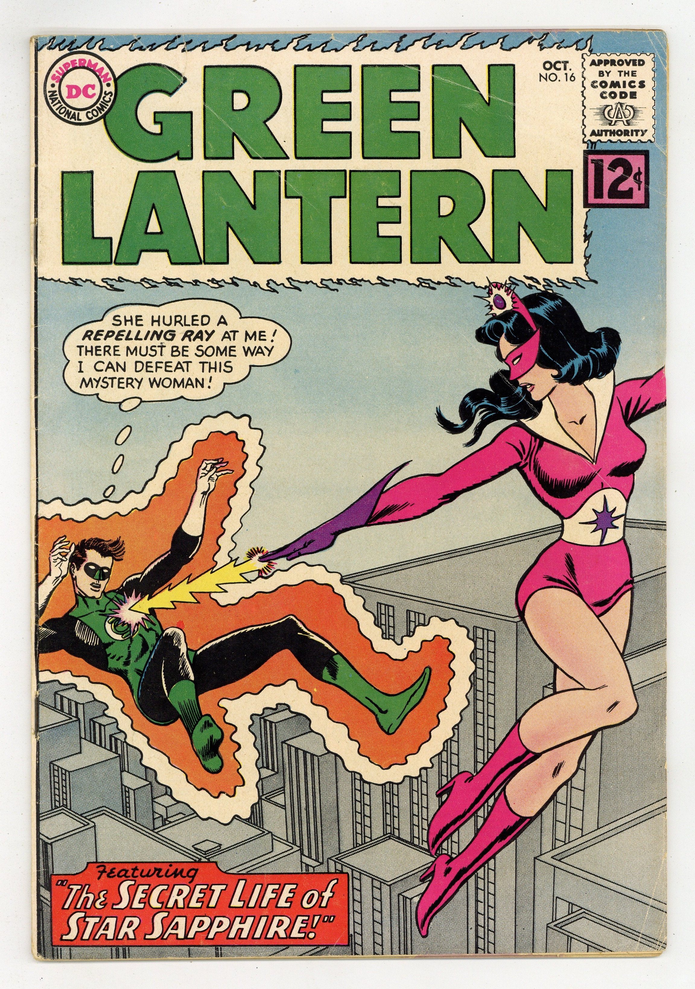 Ended Jul 15 2025 Winning Bid $130 Origin and first appearance of Star Sapphire. Cover pencils by Gil Kane, inks by Murphy Anderson. The Secret Life of Star Sapphire!, script by John Broome, pencils by Gil Kane, inks by Joe Giella; Zamoran warriors travel to Earth to make Carol Ferris thier new queen. They turn Carol into Star Sapphire and test her by having her defeat Green Lantern. Earth's First Green Lantern!, script by Gardner Fox, pencils by Gil Kane, inks by Murphy Anderson; Hal Jordan explains to Pieface why Abin Sur came to Earth in a spaceship when all Green Lanterns can travel thru space unaided. 36 pgs. $0.12. Cover price $0.12. Grade: GD/VG 3.0 explanation of grade Condition: Used (collectible)