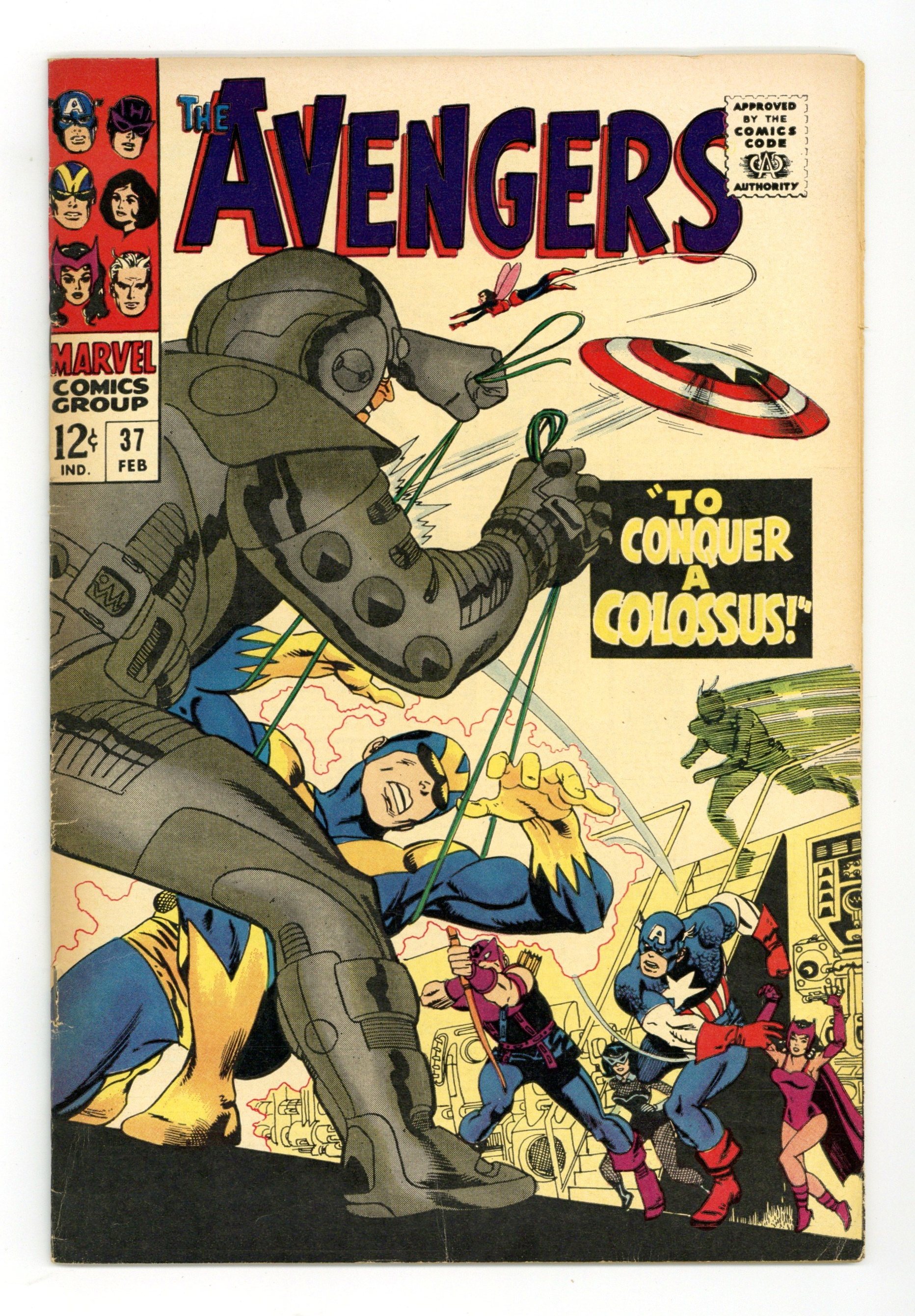 Ended Jun 6 2025 Winning Bid $22 "To Conquer a Colossus!" Part 2 of 2. Script by Roy Thomas. Art by Don Heck. Cover by Gil Kane. Against their will the Avengers blast off into outer space onboard Ixar's spaceship! The alien mastermind wants to transfer the Avengers' powers into his army of ultroids! And then merge all the ultroids into one colossal ultroid! But Earth's Mightiest Heroes have a few tricks up their sleeve! Plus one ace in the hole...or perhaps better stated: a widow in the hole. Will Ixar's disregard of Natasha lead to hisdownfall? The Black Widow has a deadly bite! Avengers Lineup: Captain America, Goliath, Hawkeye, Quicksilver, Scarlet Witch, and the Wasp. (Note: This issue was reprinted in Marvel Triple Action #29.) 36 pages. Cover price $0.12. Grade: VG 4.0 explanation of grade Condition: Used (collectible)