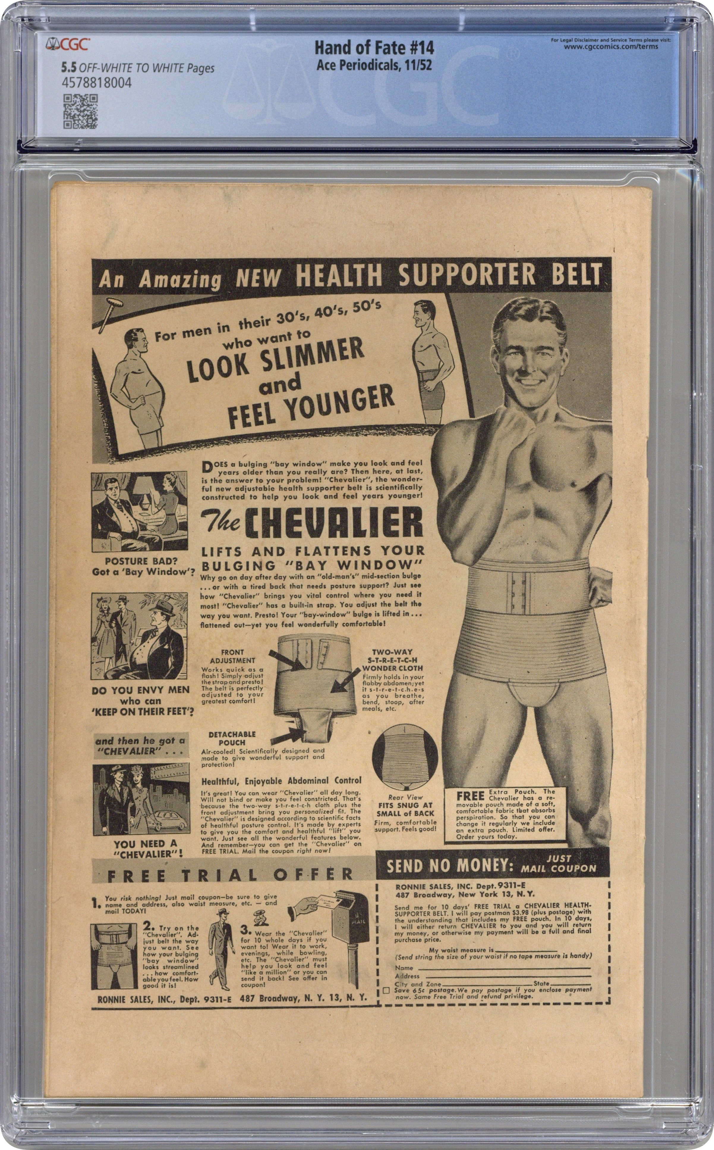 Published Nov 1952 by Ace Magazines.Hand of Fate (1951 Ace) 14 CGC 5.5