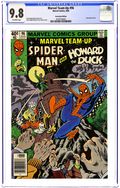 Newsstand Edition. "Panic in the Park!" Guest-starring Spider-Man and Howard the Duck. Script and Art by Alan Kupperberg. Cover by Alan Kupperberg and Terry Austin. It's an off-beat tale as Howard the Duck drives his taxi cab from Cleveland all the way to New York City! Howard's special passenger is a man named Status Quo who wants to eliminate all fads and return things to the way they used to be! After Status Quo stirs up a riot in Central Park, the web-slinger swings into action! Spidey will need some help from his yellow-feathered friend to shake up the Status Quo! Possible cameo appearance by Mary Jane Watson on page 17. Last 40ยข issue. 36 pages. Cover price $0.40. Grade: CGC 9.8 explanation of grade Condition: Used (collectible)