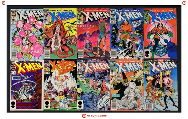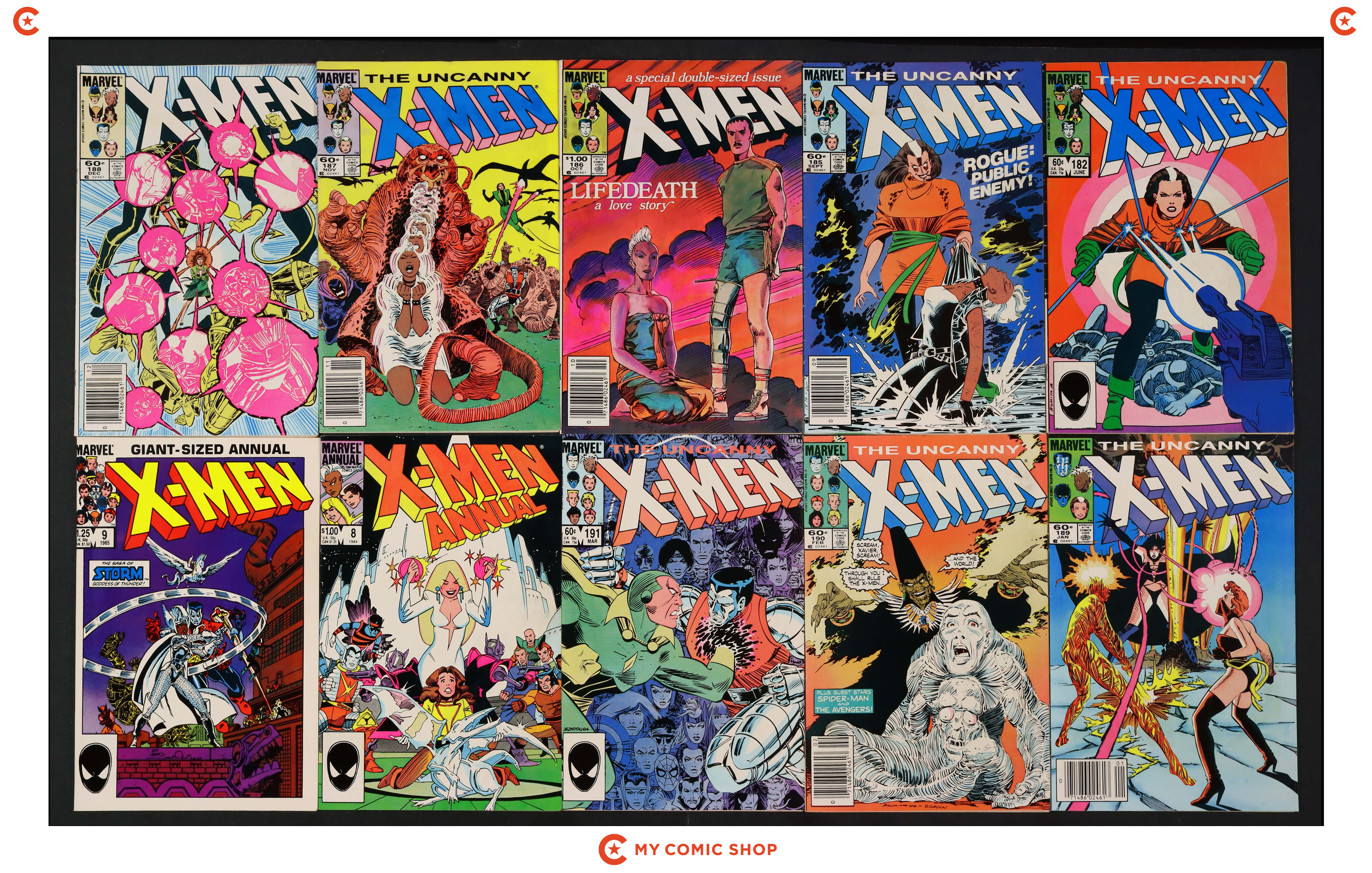 Issues 182, 185, 186N, 187N-190N, and 191D of Uncanny X-Men (1963 1st Series); and 8D and 9 of Uncanny X-Men (1963 1st Series) Annual. Most will grade in the FN range with some grading VG.