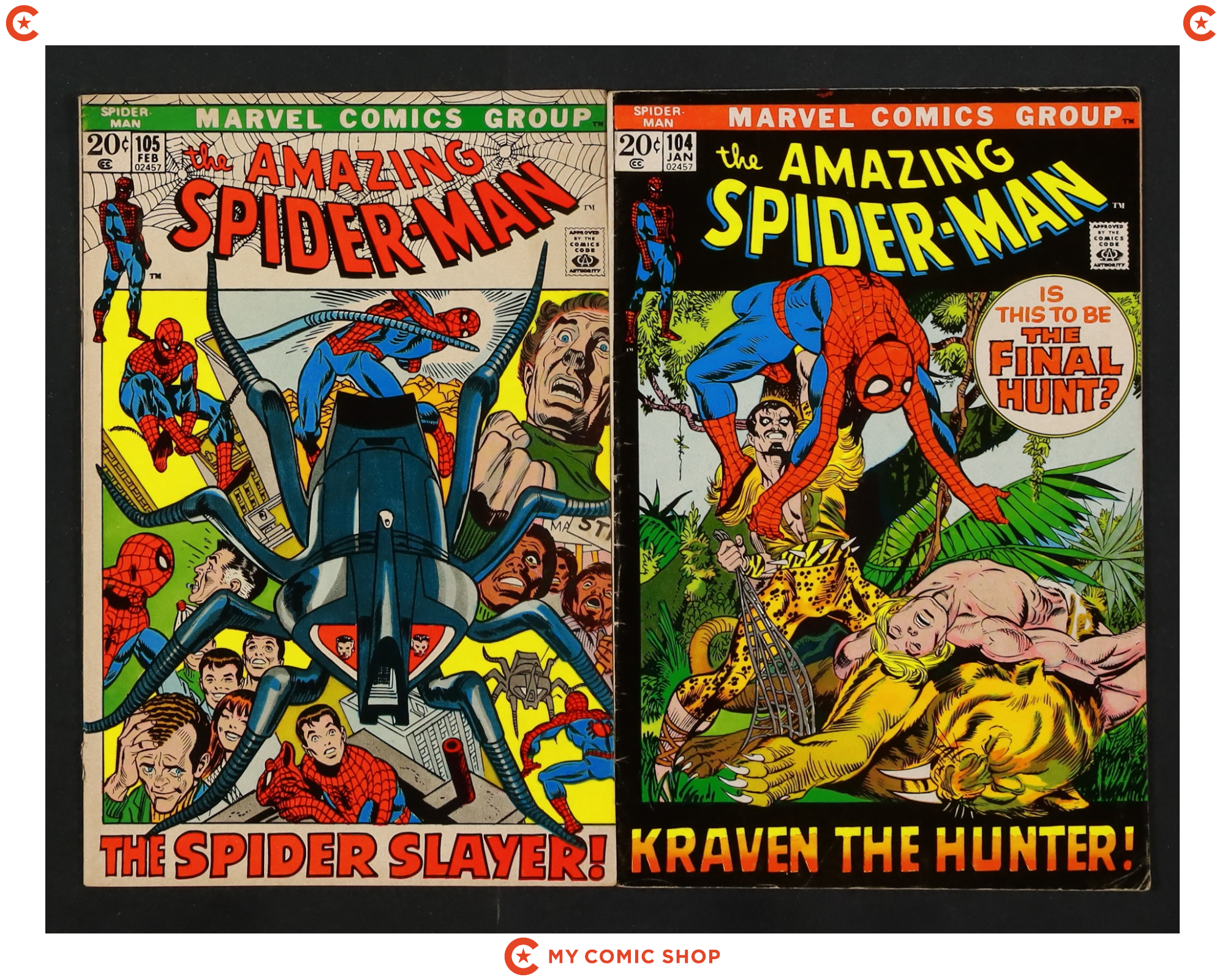 Issues 104 and 105 of Amazing Spider-Man (1963 1st Series). Most will grade in the VG range.