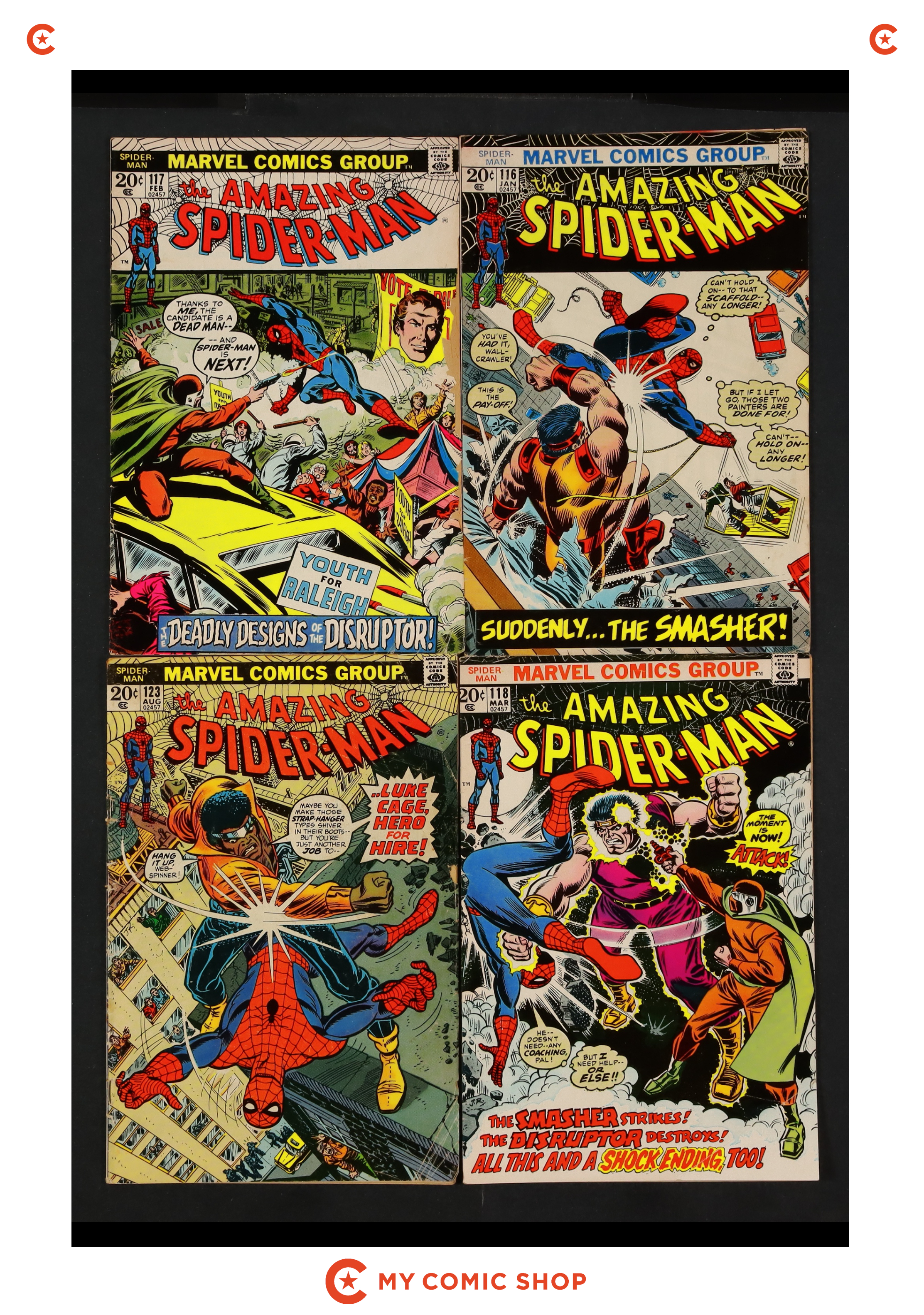 Issues 116-118 and 123 of Amazing Spider-Man (1963 1st Series). Most will grade in the VG to GD range.
