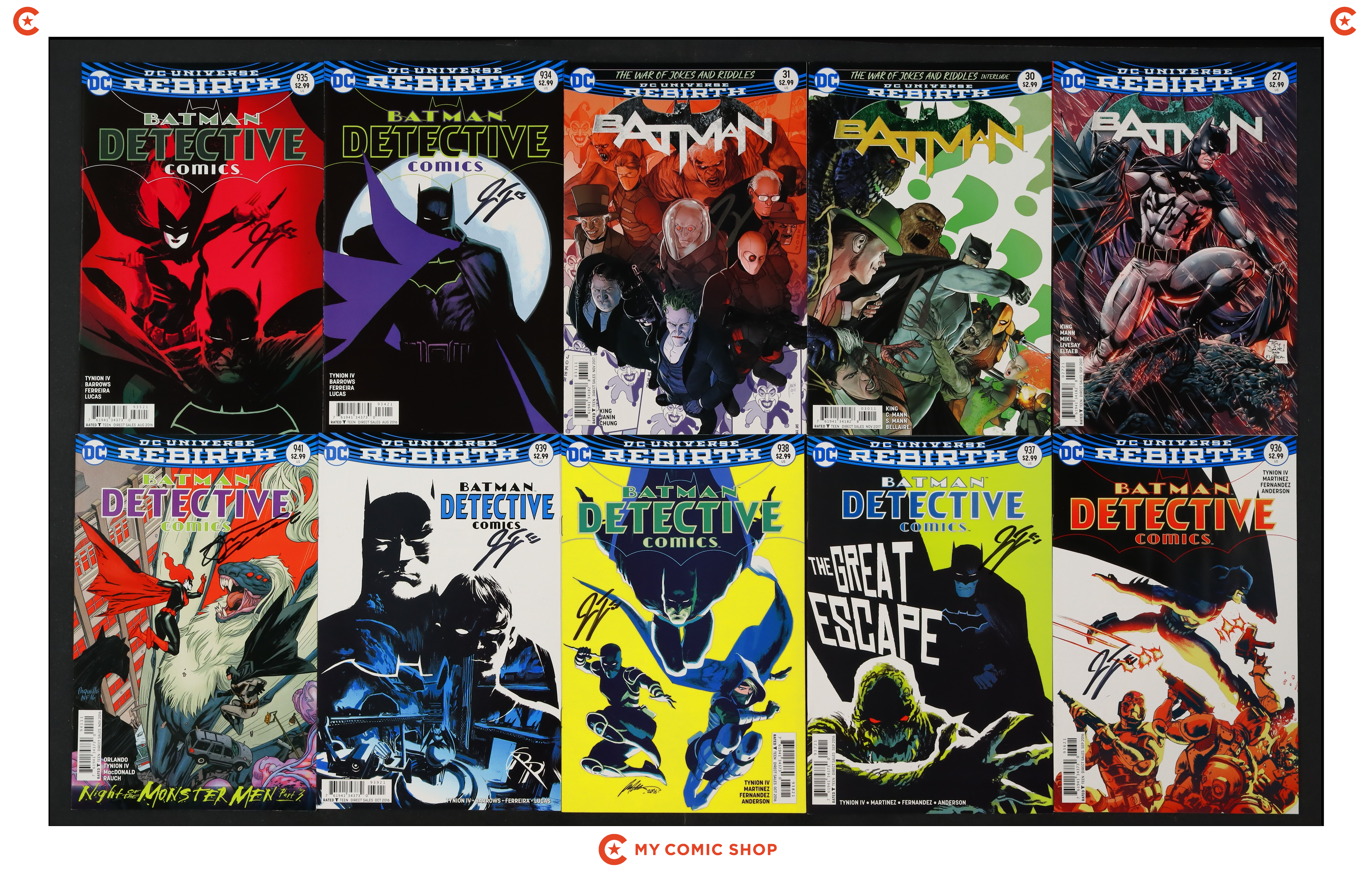 Issues 27B, 30A, 31A, 934B, 935B, 936B, 937B, 938B, 939B, 941A of Batman (2016 3rd Series). Signed by Tom King, Steve Orlando, James Tynion IV; no certification is included. Most will grade in the VF to NM range.