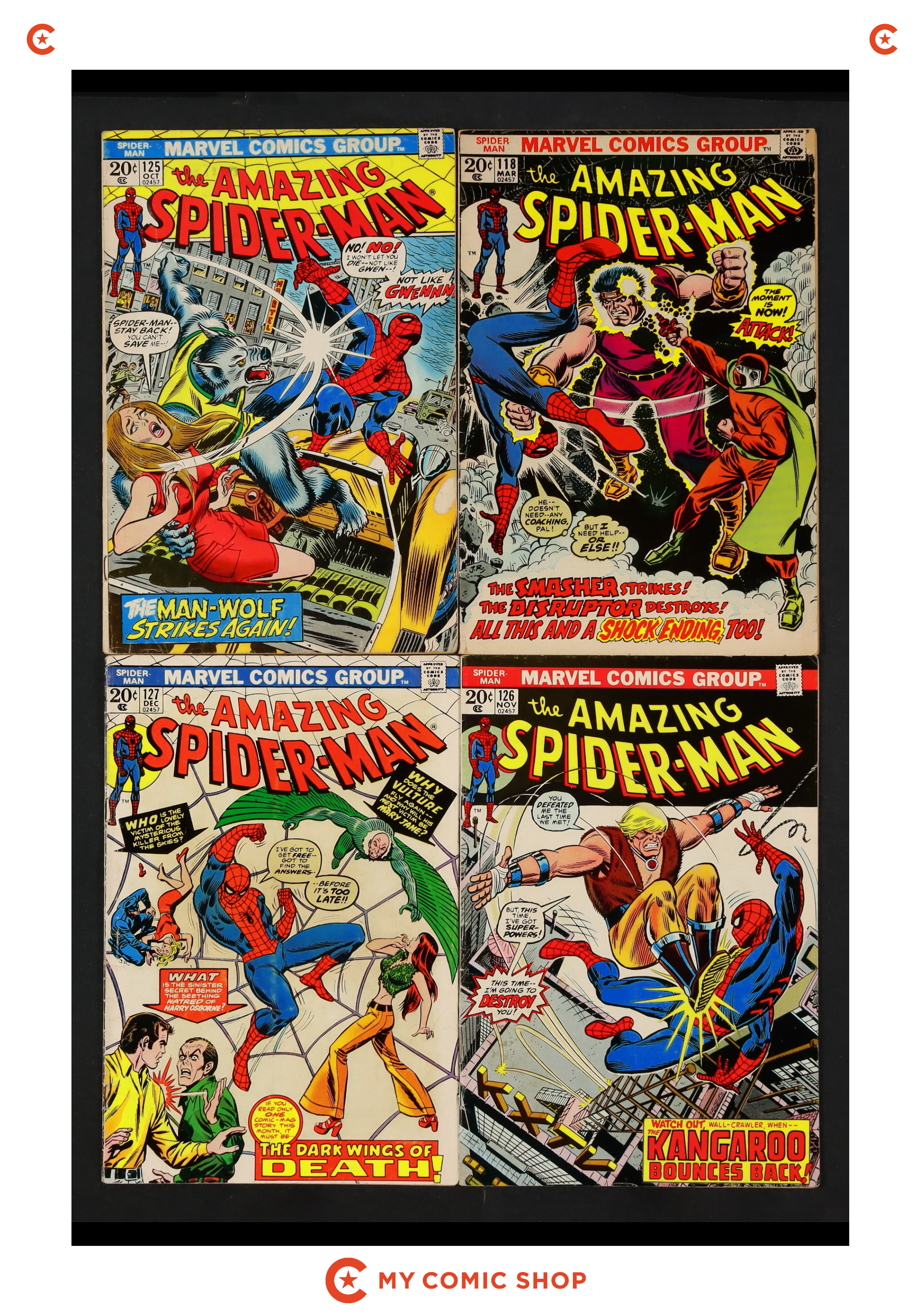 Issues 118 and 125-127 of Amazing Spider-Man (1963 1st Series). Most will grade in the VG to GD range.