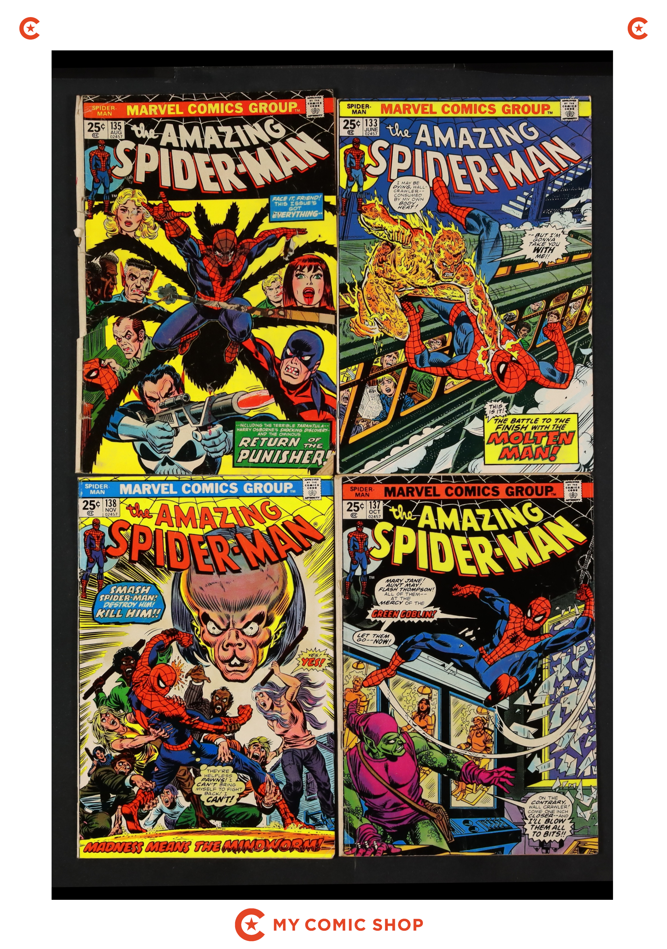 Issues 133, 135, 137, and 138 of Amazing Spider-Man (1963 1st Series). Most will grade in the VG to GD range with #135 grading FR.