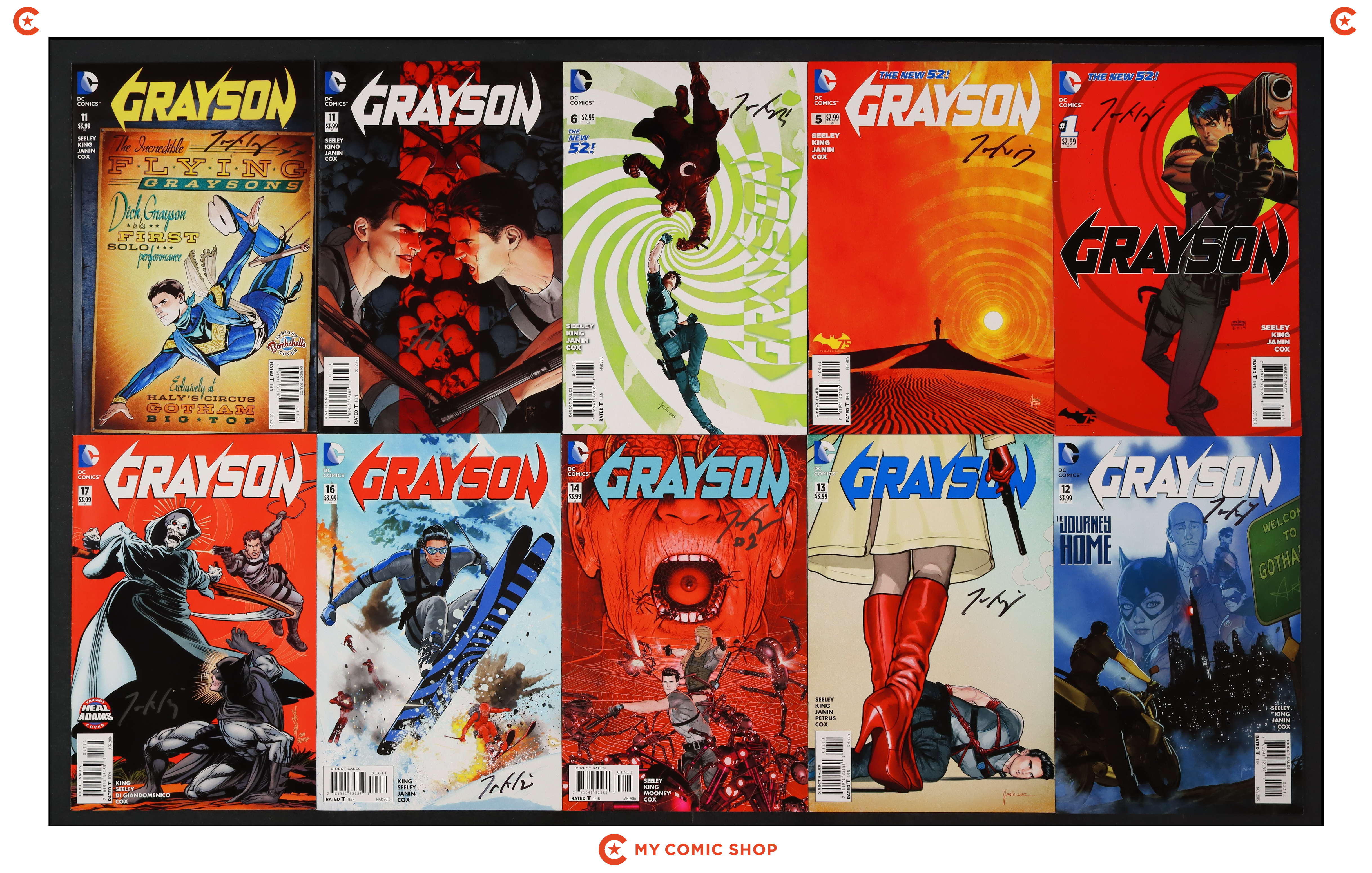 Issues 1E, 5A, 6A, 11A, 11B, 12A, 13A, 14A, 16A, 17B of Grayson (2014 DC). Signed by Tom King, no certification is included. Most will grade in the VF to NM- range