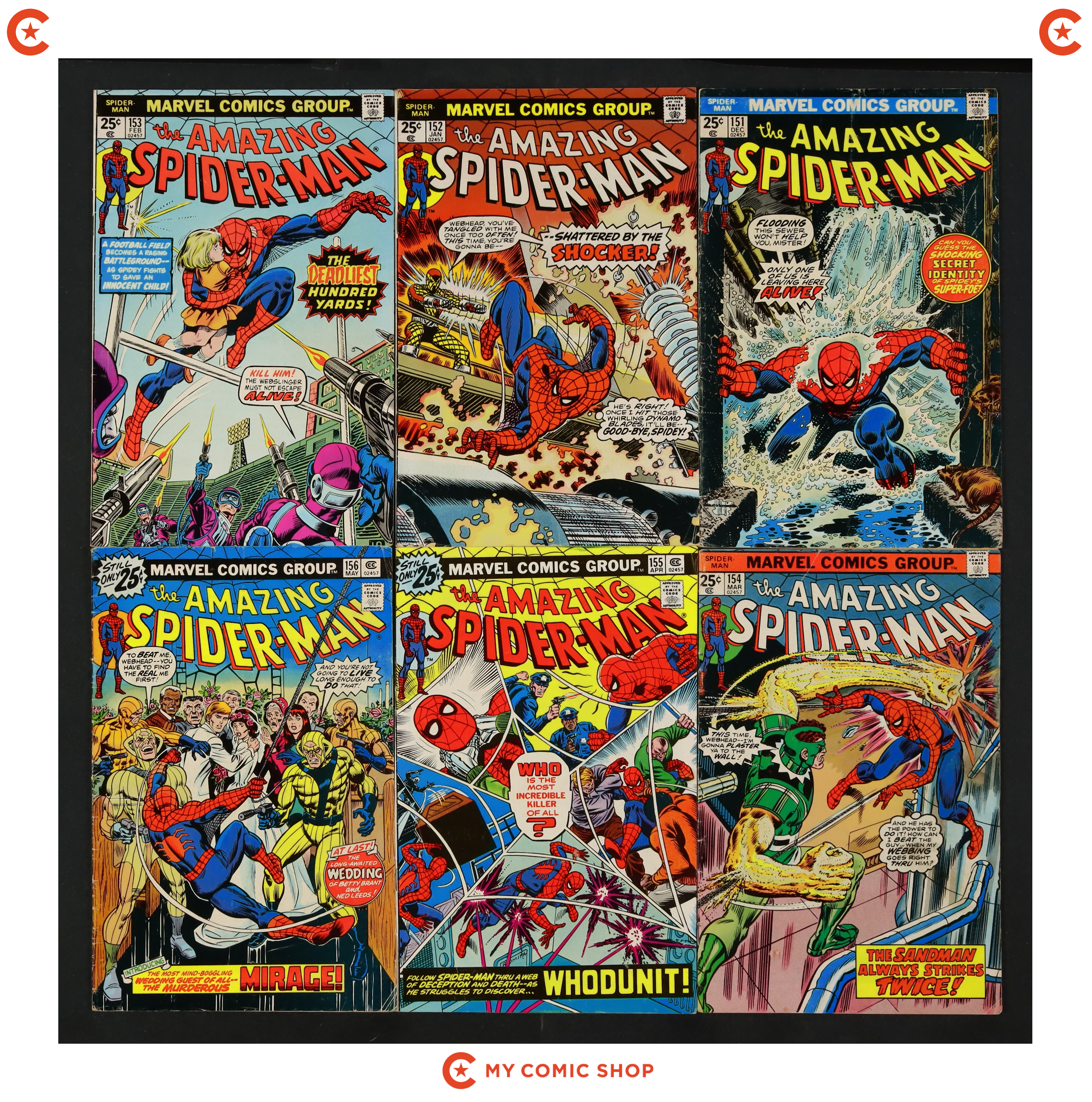 Issues 151-156 of Amazing Spider-Man (1963 1st Series). Most will grade in the VG to GD/VG range.
