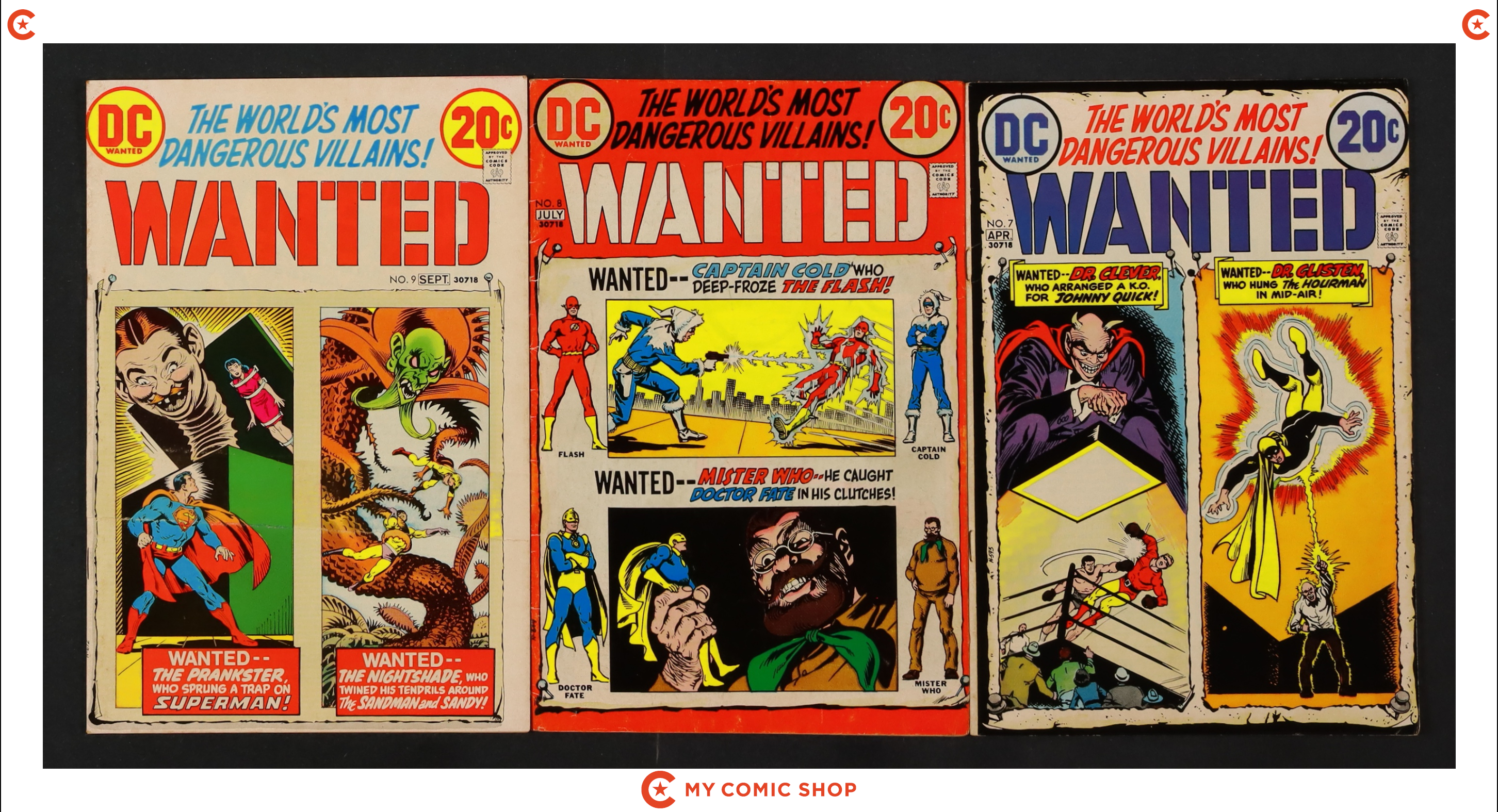 Issues 1-9 of Wanted the World's Most Dangerous Villains (1972). Most will grade in the GD/VG to VG/FN range.