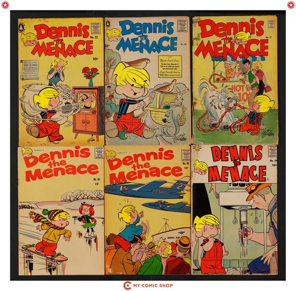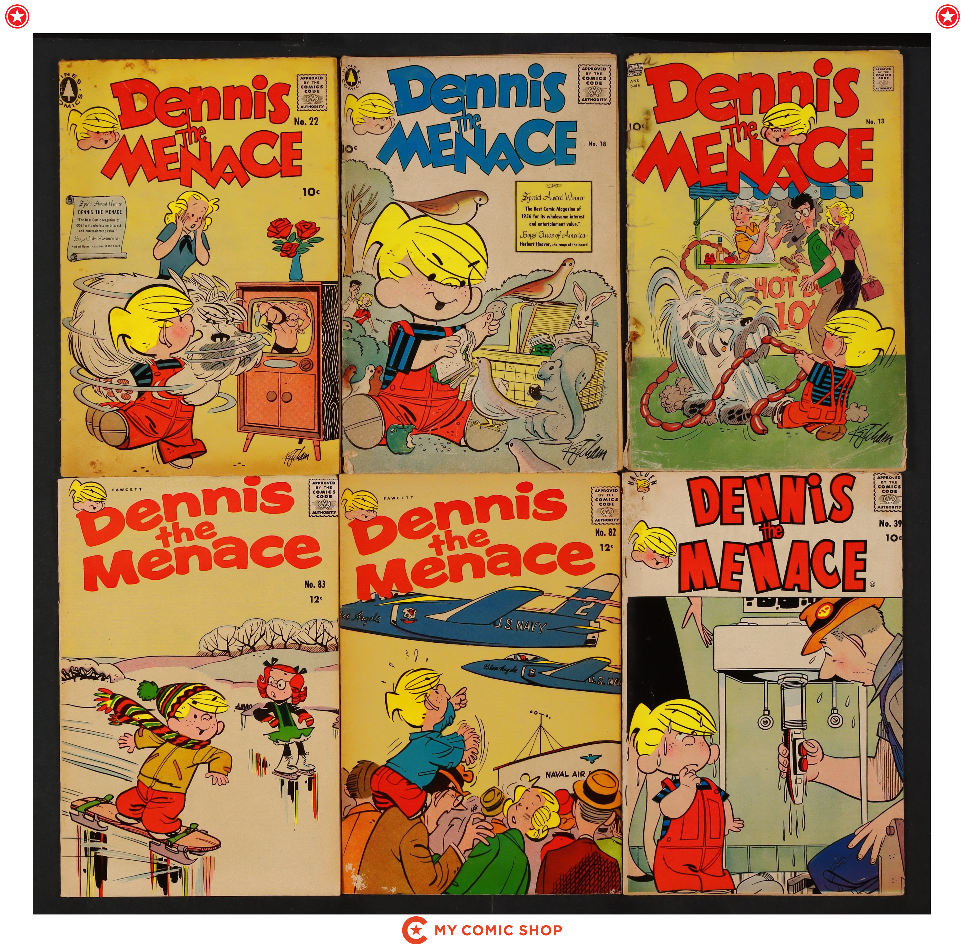 Issues 13, 18, 22, 39, 82-84, 86, 87 of Dennis the Menace (1953 Standard/Pines/Haliden/Fawcett). Most will grade in the GD- to GD/VG range.