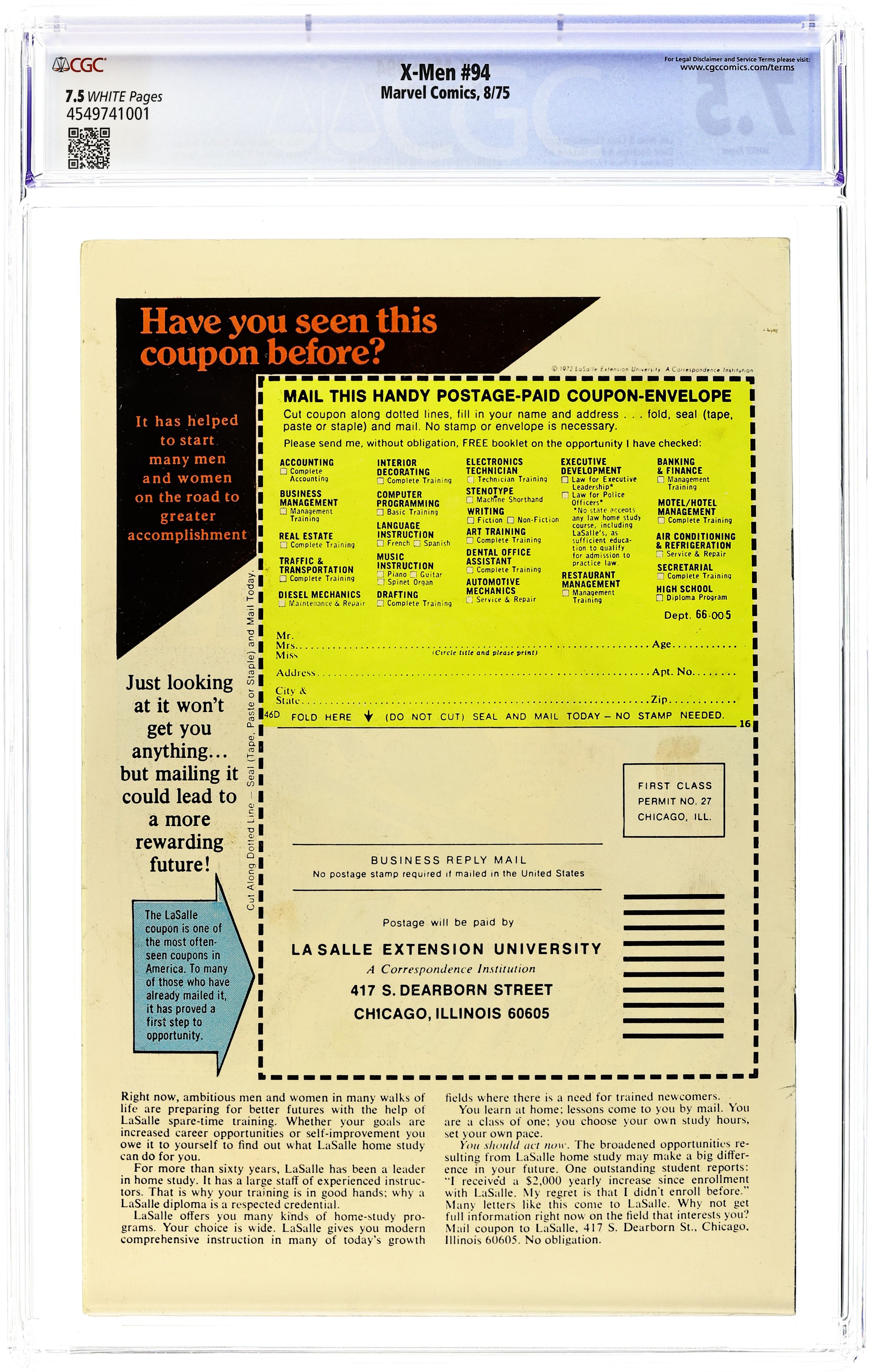 Uncanny X-Men (1963 1st Series) 94 CGC 7.5
