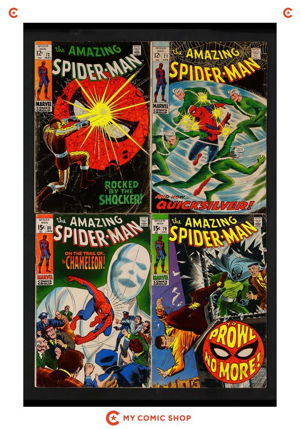 Issues 71, 72, 79, and 80 of Amazing Spider-Man (1963 1st Series). Most will grade in the GD range.