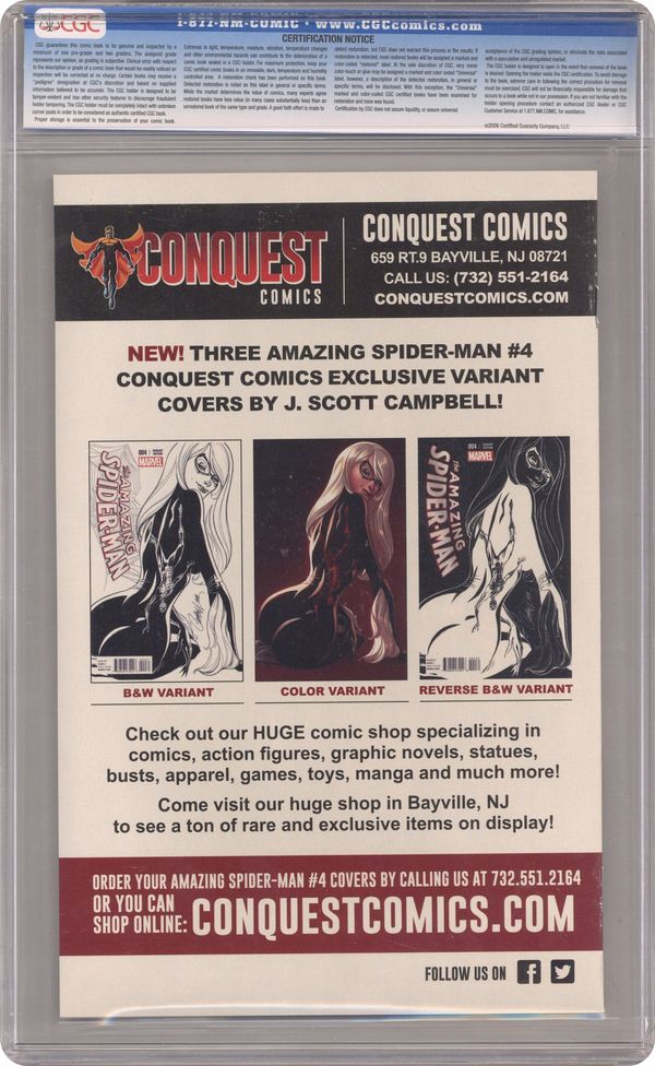 Tags: Spider-ManAmazing Spider-Man (2014 3rd Series) 4CONQUEST.B CGC 9.6 Campbell Conquest Comics B&W Variant