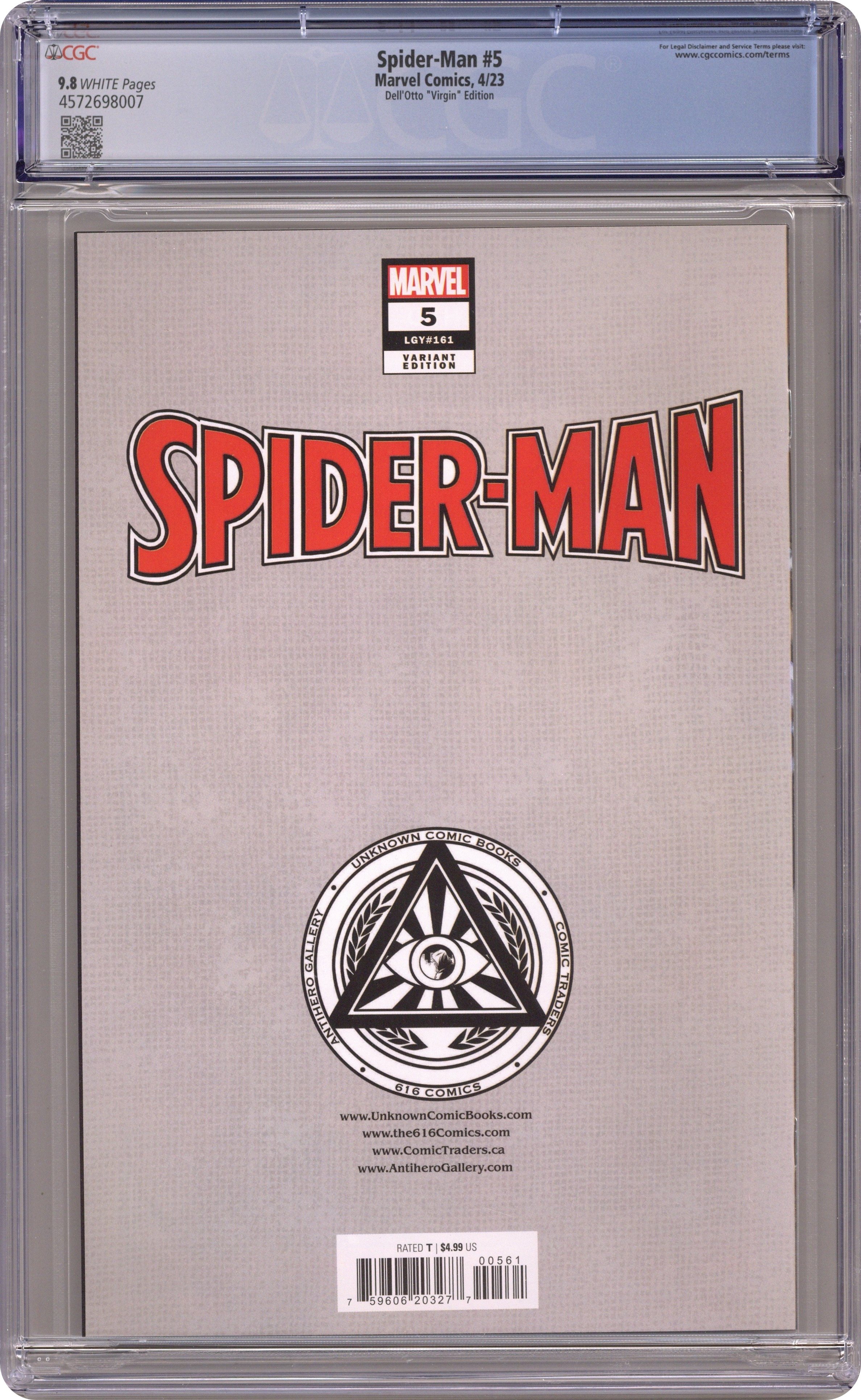 Ended Jun 17 2025 Winning Bid $30 Comics Illuminati (Unknown Comics, The 616 Comics, AntiHero Gallery, and Comic Traders) exclusive Virgin Cover by Gabriele Dell'Otto. Written by Dan Slott. Art by Mark Bagley. "The End of the Spider-Verse" continues! See a new side of Peter Parker and the Spider-mythos! Shathra and her forces work towards the extinction of Arachnida sapiens. PLUS! This issue includes a special super heroic back-up story featuring Spider-Man and Photon celebrating Black History Month! 36 pages, full color. Rated T Grade: CGC 9.8 explanation of grade Condition: Used (collectible)