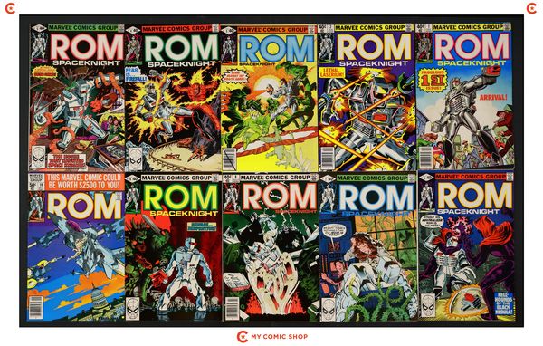 Issues 1N, 2-10 of ROM (1979 Marvel). Most will grade in the FN- to FN+ range, with 1 and 4 grading at GD.