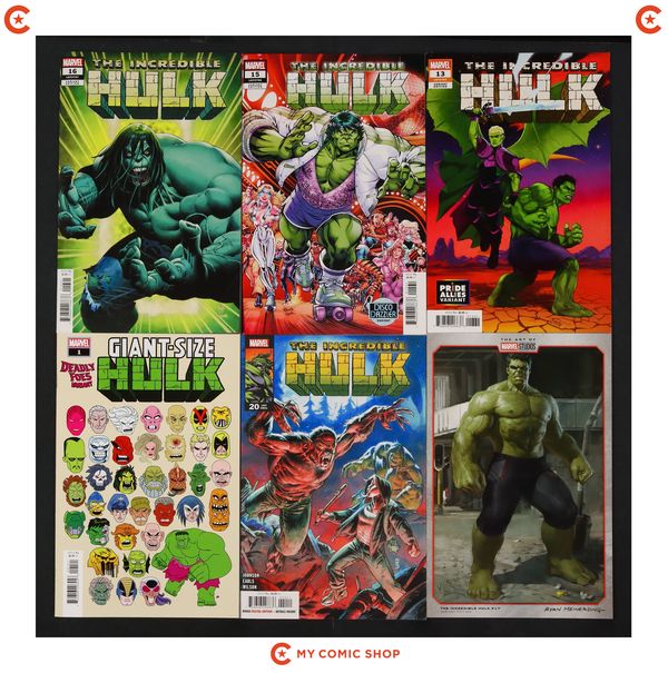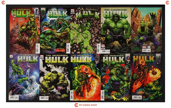 Issues 1B, 2C, 3C, 4A-8A, 9B, 11A, 13C, 15C, 16B, 17D, 20A of Incredible Hulk (2023 Marvel); and Giant-Size Hulk (2024 Marvel) 1B. Most will grade in the VF to NM range.