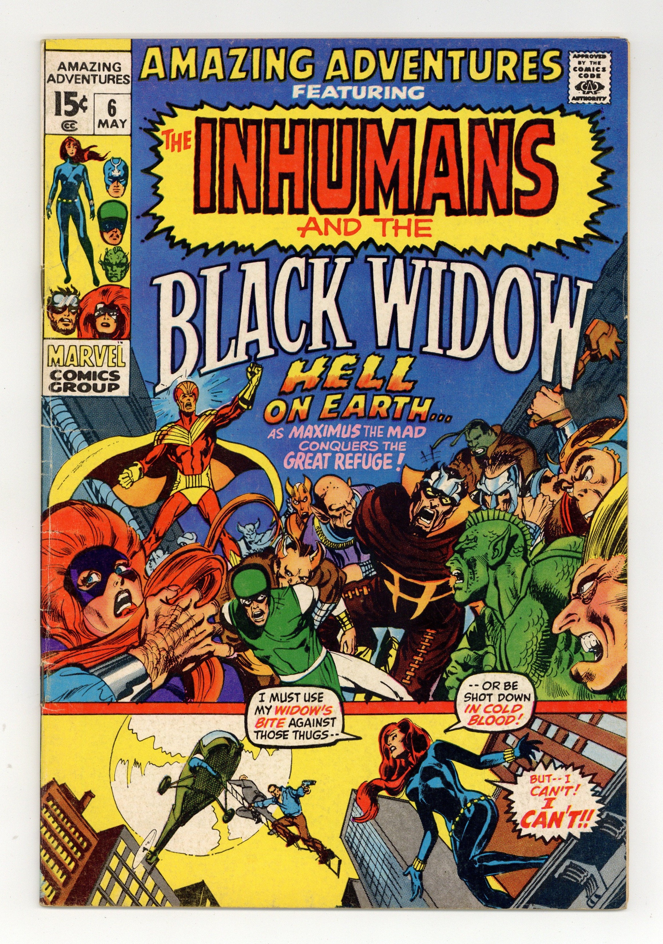 Ends Dec 8 7:13 PM CST Bid History 5 bids Current Bid $7 Your Secret Max Bid If you'd like to bid, please log in or register. Cover by Neal Adams. "Hell On Earth!", script by Roy Thomas, pencils by Neal Adams, inks by John Verpoorten; Black Bolt moves away from the boy to a tanker that is moored at the end of the dock and hesitantly pronounces the word 'I'; The resulting shock completely destroys the tanker and creates a small tidal wave, so the boy leads Black Bolt away from the authorities while Maximus mentally enslaves the Inhumans to attack the royal family and they flee the scene. "Blood Will Tell!", script by Roy Thomas, pencils by Don Heck, inks by Sal Buscema; The Astrologer devises a plot involving dressing up his henchmen as doctors. 36 pgs, full color. $0.15. Cover price $0.15. Grade: Very Good explanation of grade Condition: Used (collectible)