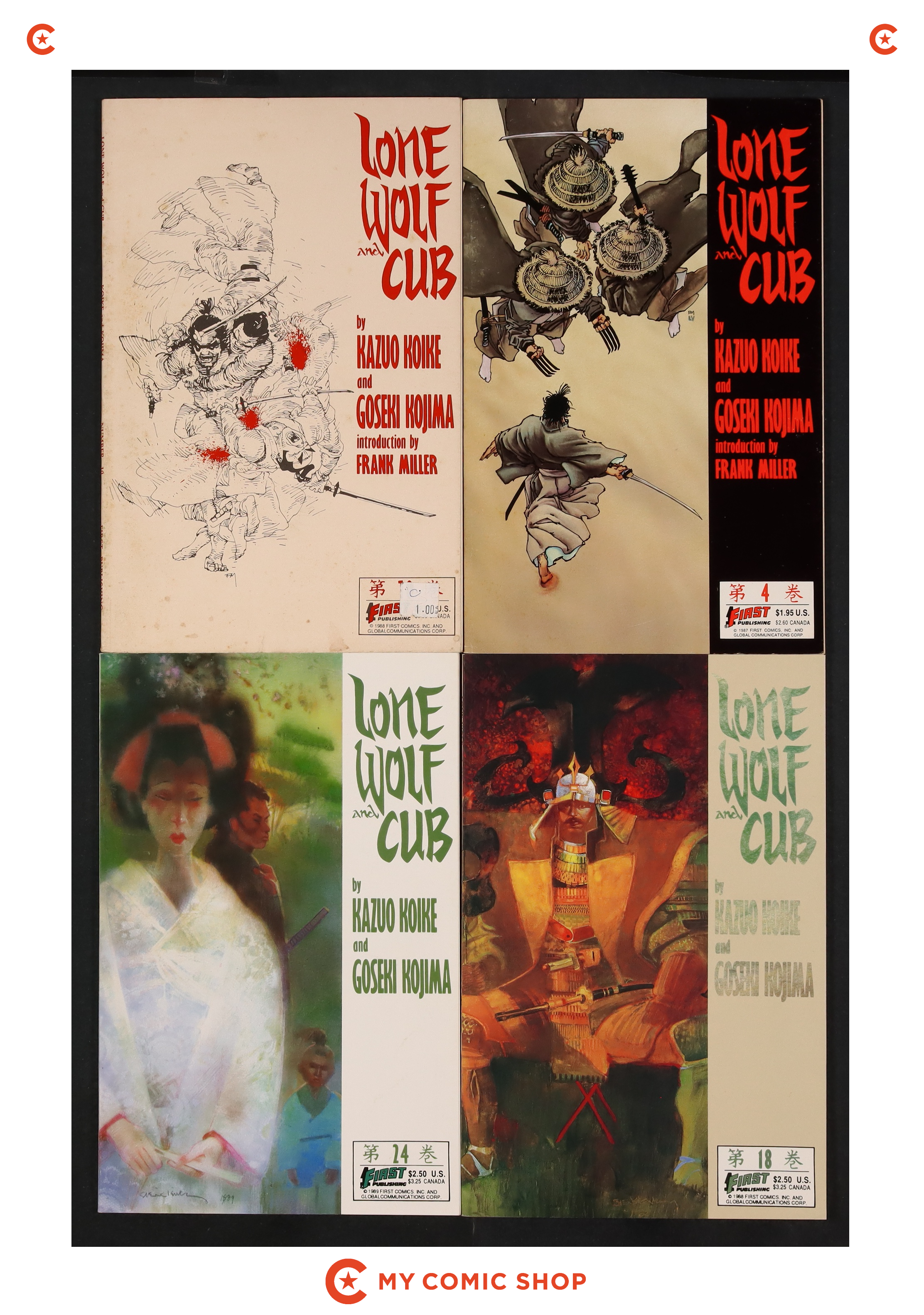 Issues 4, 10, 18, 24 of Lone Wolf and Cub (1987 First). Most will grade in the GD+ to FN+ range.