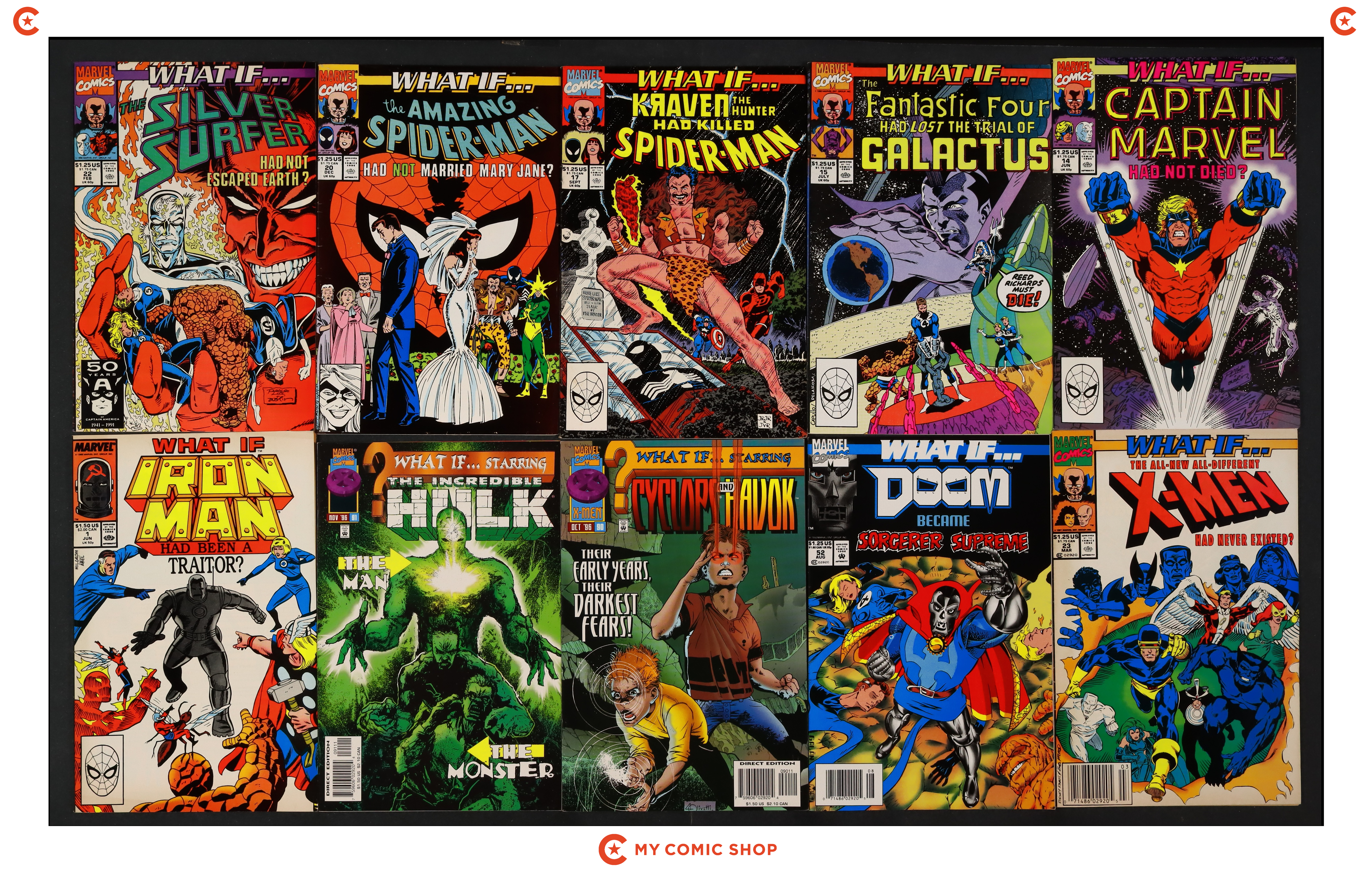 Issues 14, 15, 17, 20, 22, 23, 52, 90-91 of What If (1989 2nd Series), and issue 1 of What If (1988) Special. Most issues will grade in the VG to FN range.