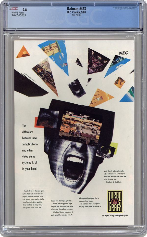 Ended Jul 17 2025 Winning Bid $293 Second or later printing with TurboGrafx ad on back cover. 36 Pages, Full Color. Cover price $0.75. Grade: CGC 9.8 explanation of grade Condition: Used (collectible)