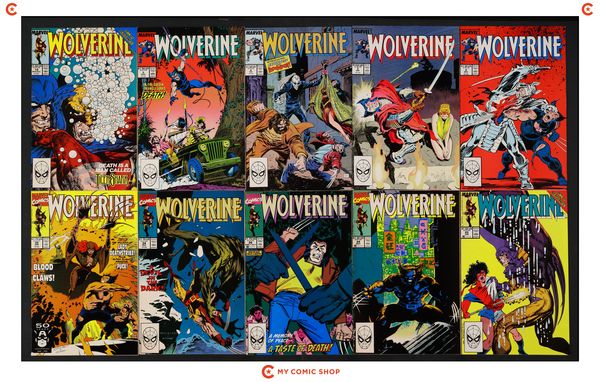 Issues 2D-5D, 19D, 20D, 24, 26D, 34, 35D of Wolverine (1988 1st Series). Most will grade in the FN to VF.