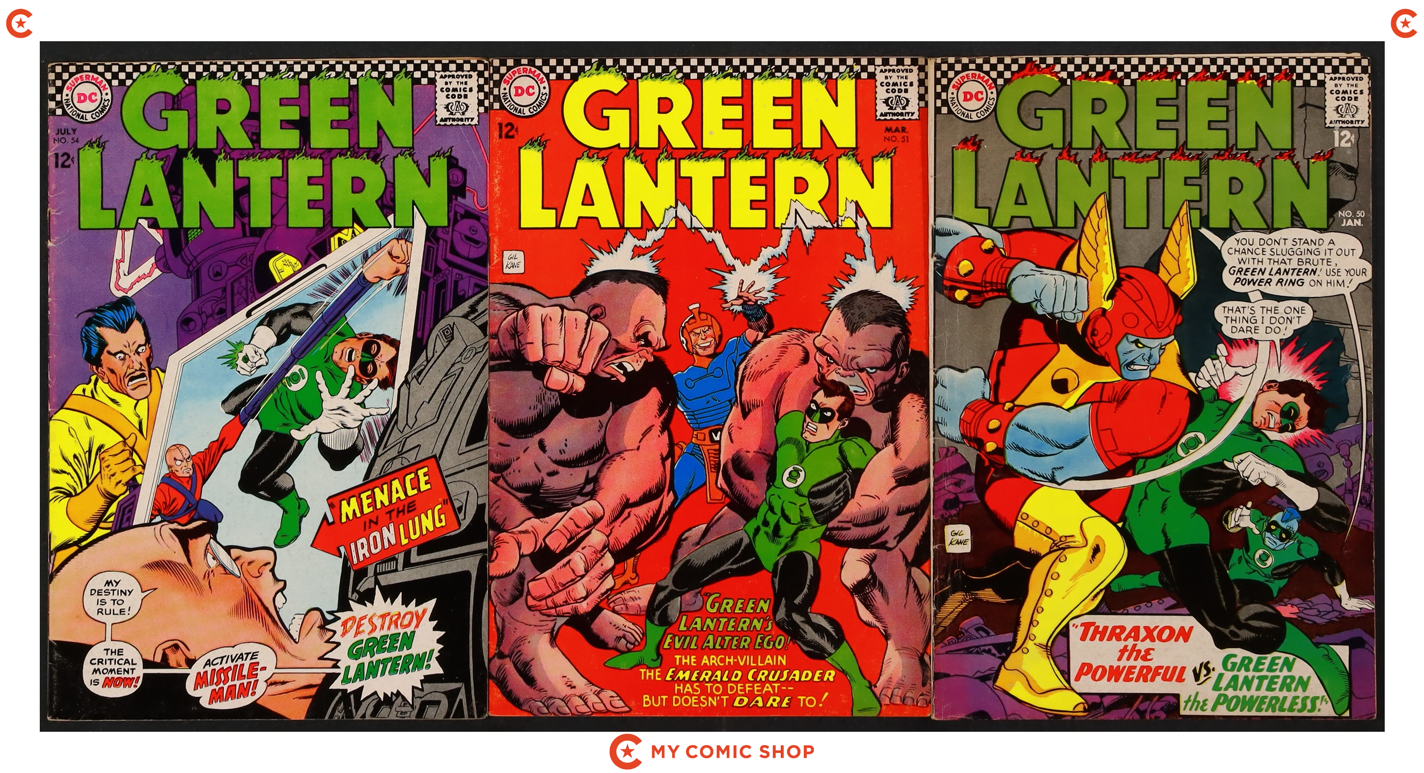 Issues 43-45, 47-51, and 54 of Green Lantern (1960 2nd Series DC). Most will grade in the GD/VG range with #49 grading GD.