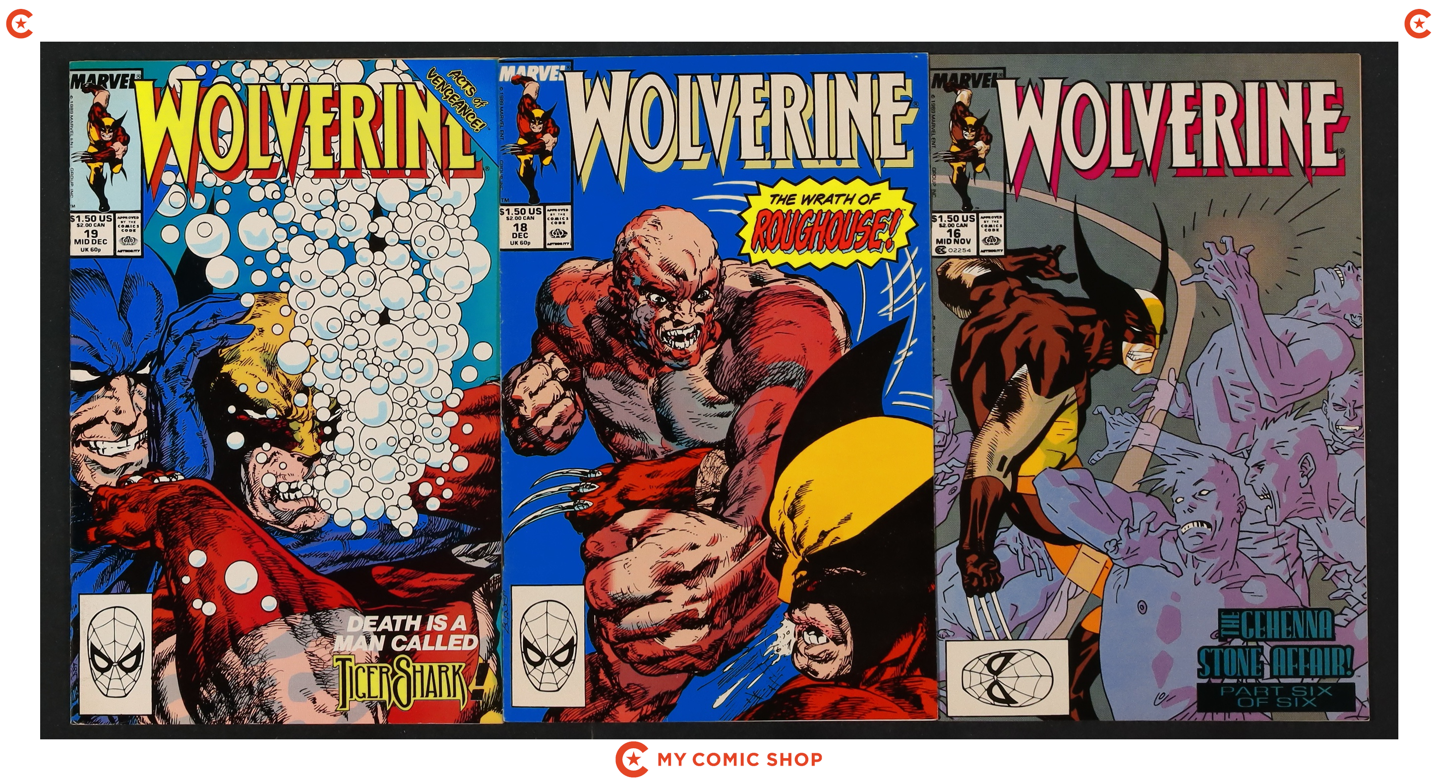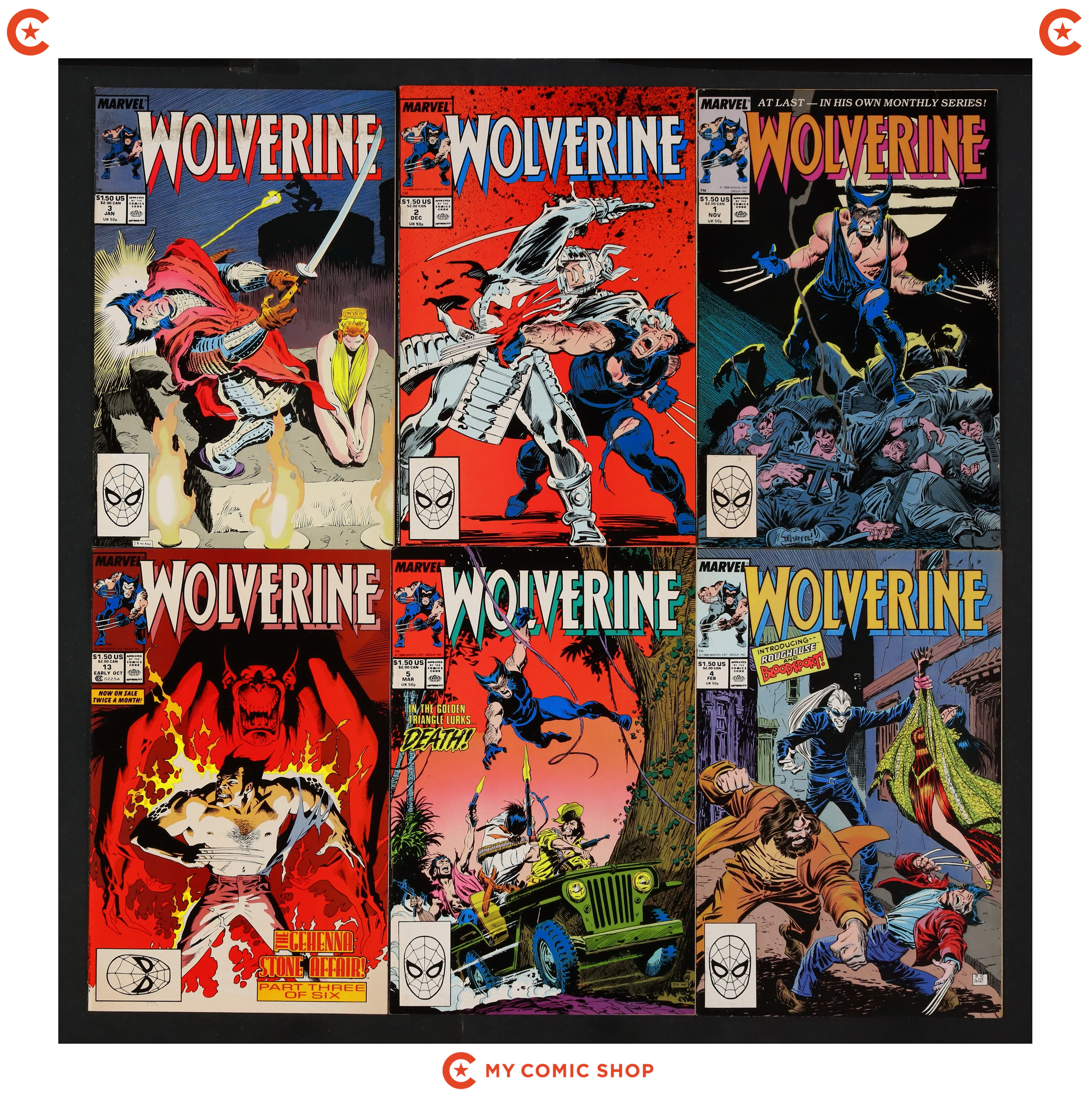 Issues 1D-5D, 13D, 16D, 18D, 19D of Wolverine (1988 1st Series). Most issues will grade in the VG to FN range.