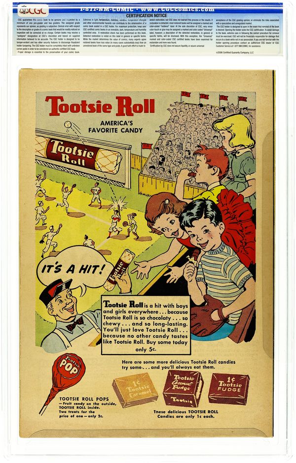 Ended Oct 13 2025 Bid History 17 bids Winning Bid $160 Cover by Owen Fitzgerald. Written by Cal Howard, Henry Boltinoff and unknown. Art by Owen Fitzgerald, Henry Boltinoff and unknown. Bob Hope, America's favorite funnyman, plays bicycle guide in an untitled 3-part story by Cal Howard and Owen Fitzgerald. Plus: Peg 1-pager by Henry Boltinoff; A Bit of Disc and Data article; Moolah the Mystic 1-pager by Boltinoff; and Honey in Hollywood 2-pager. 32 pages, full color. Cover price $0.10. Grade: CGC 7.5 explanation of grade Condition: Used (collectible)