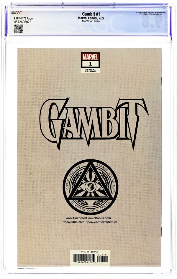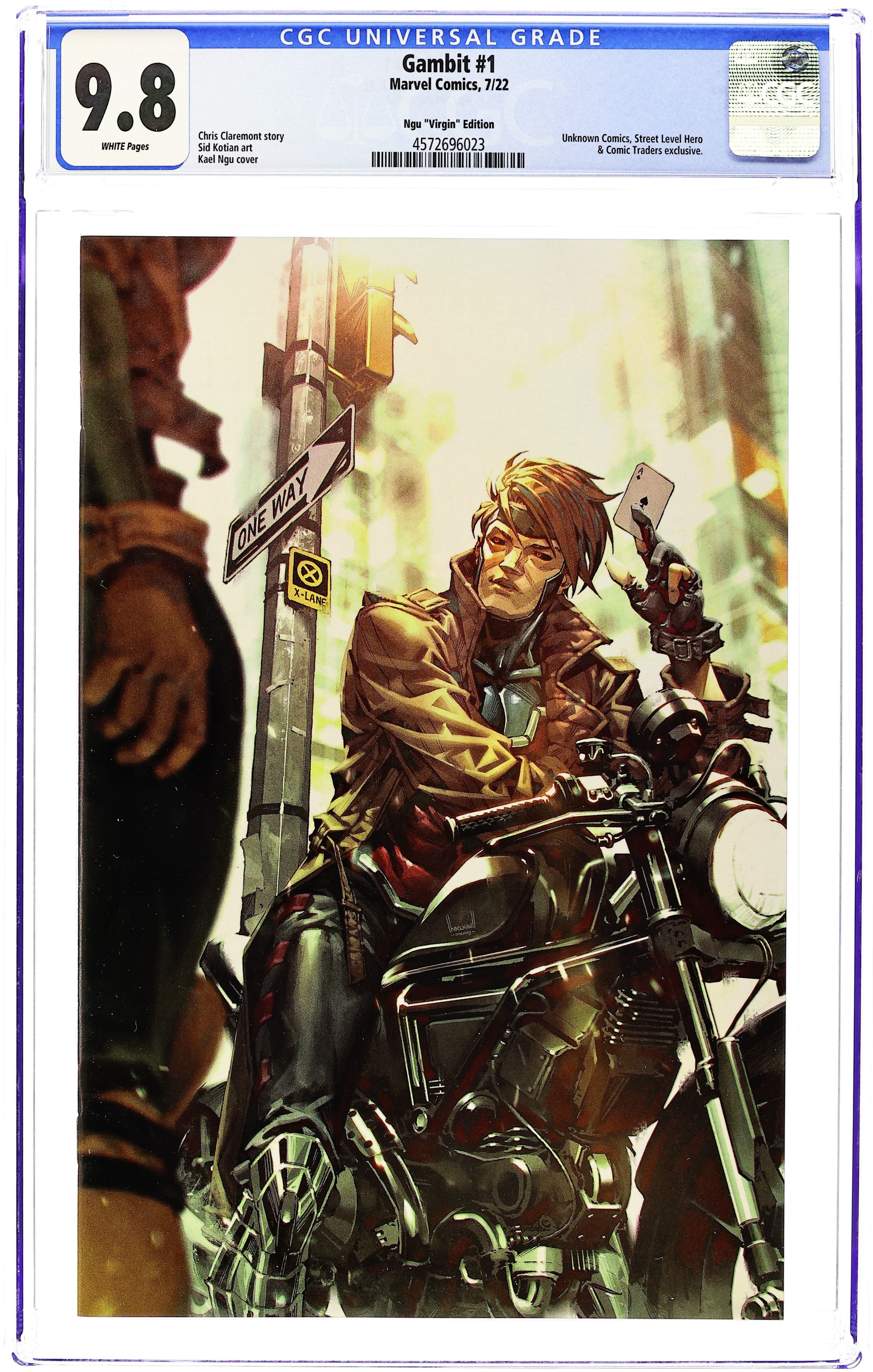 Ended Jun 16 2025 Winning Bid $31 Comics Illuminati (Unknown Comics, Street Level Hero, and Comic Traders) Exclusive Virgin Cover by Kael Ngu. Written by Chris Claremont. Art by Sid Kotian. All-NEW ADVENTURES OF THE LEGENDARY THIEF BY CO-CREATOR CHRIS CLAREMONT! You think you know all there is to know about Remy LeBeau, the Ragin' Cajun, the mutant known as GAMBIT - but legendary X-scribe Chris Claremont has an ace up his sleeve with this new series! Before he joined the X-MEN, Gambit encountered a mysterious girl named 'RO - the mutant STORM regressed to her child self by the nefarious NANNY - and the two went up against the forces of the SHADOW KING! Now, revealed for the first time, Gambit finds his path to becoming the heroic X-Man millions of fans call their favorite! Joined by rising star artist Sid Kotian, Chris weaves a story of action, intrigue and revenge that made Gambit the mutant he is and forged his relationship with Storm. You'll get a charge out of this one, mon ami! 28 pages, full color. Rated T+ Grade: CGC 9.8 explanation of grade Condition: Used (collectible)