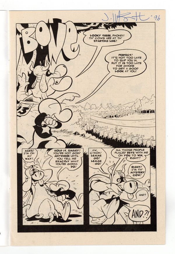Ended Jun 12 2025 Winning Bid $25 Cover art by Jeff Smith. Untitled story, script and art by Jeff Smith; The Great Cow Race is run, but Rat Creatures interfere with the race. This is a first printing. Most issues from #1-12, and possible some beyond, have been reprinted. Reprints may be identified by a 2nd, 3rd, 4th, 5th, etc. printing notice inside the comic. 28 pgs. $2.95. This is a first printing. Most issues from #1-12, and possible some beyond, have been reprinted. Reprints may be identified by a 2nd, 3rd, 4th, 5th, etc. printing notice inside the comic. Cover price $2.95. Grade: VF 8.0 explanation of grade Condition: Used (collectible)