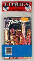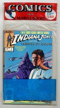 Includes issues 1-3 of Indiana Jones and the Temple of Doom (1984 Marvel) Movie Adaptation. NOTE: Polybag has a 2" cut near the top and a 5" cut at the bottom of the bag, however comics cannot be removed/added through cuts this size.