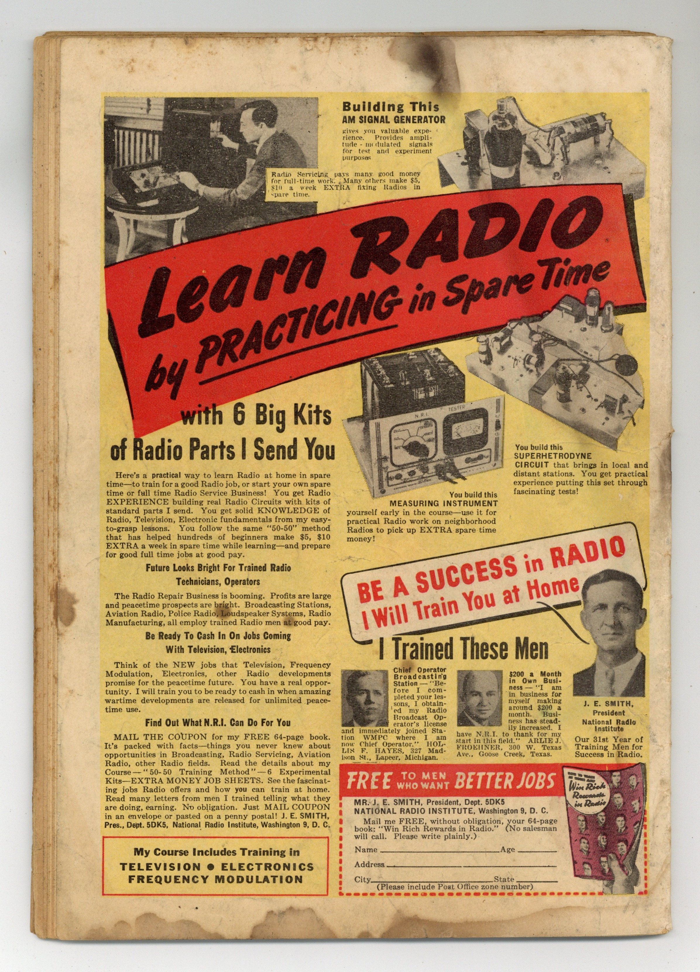 Cover by Charles Biro. Stories and art by Charles Biro, Norman Maurer, Dick Wood, Bob Q. Sale, Carl Hubbell and Dick Briefer. This early superhero title was one of the comics that made publisher Lev Gleason a major player during the Golden Age. Daredevil and The Little Wise Guys encounter a carnival fortune teller and his trail of shattered lives. The Pirate Prince meets the evil Horrible Horace, who takes advantage of their uncanny resemblance, in a story by Dick Briefer. Teen inventor Dickie Dean creates a houseboat of the air. Daredevil; Sniffer and the Deadly Dozen; Dickie Dean; Crimebuster: A Real Champ; The Pirate Prince; The Claw. 52 pages, Full Color. Cover price $0.10. Grade: GD- 1.8 explanation of grade Condition: Used (collectible)