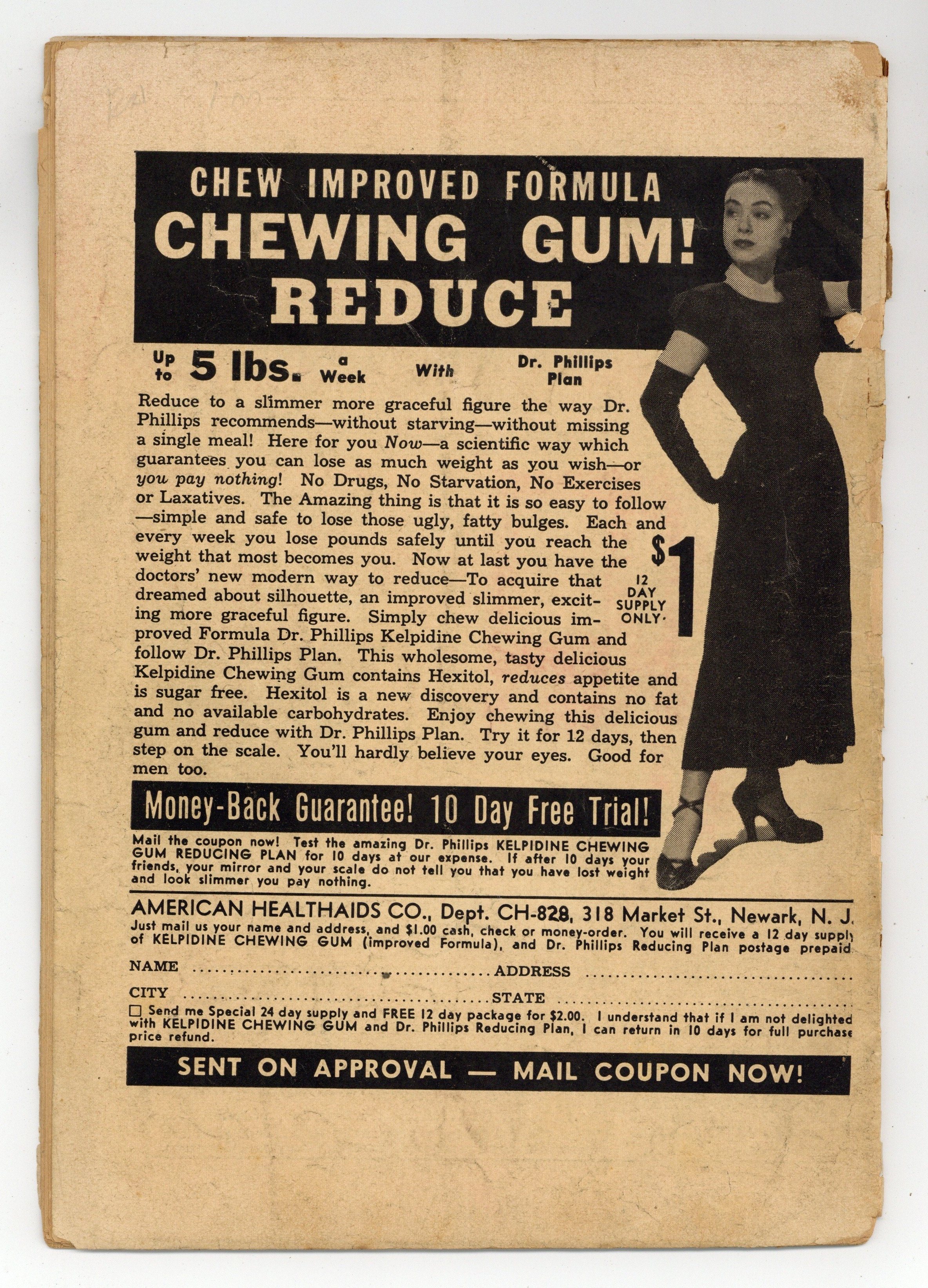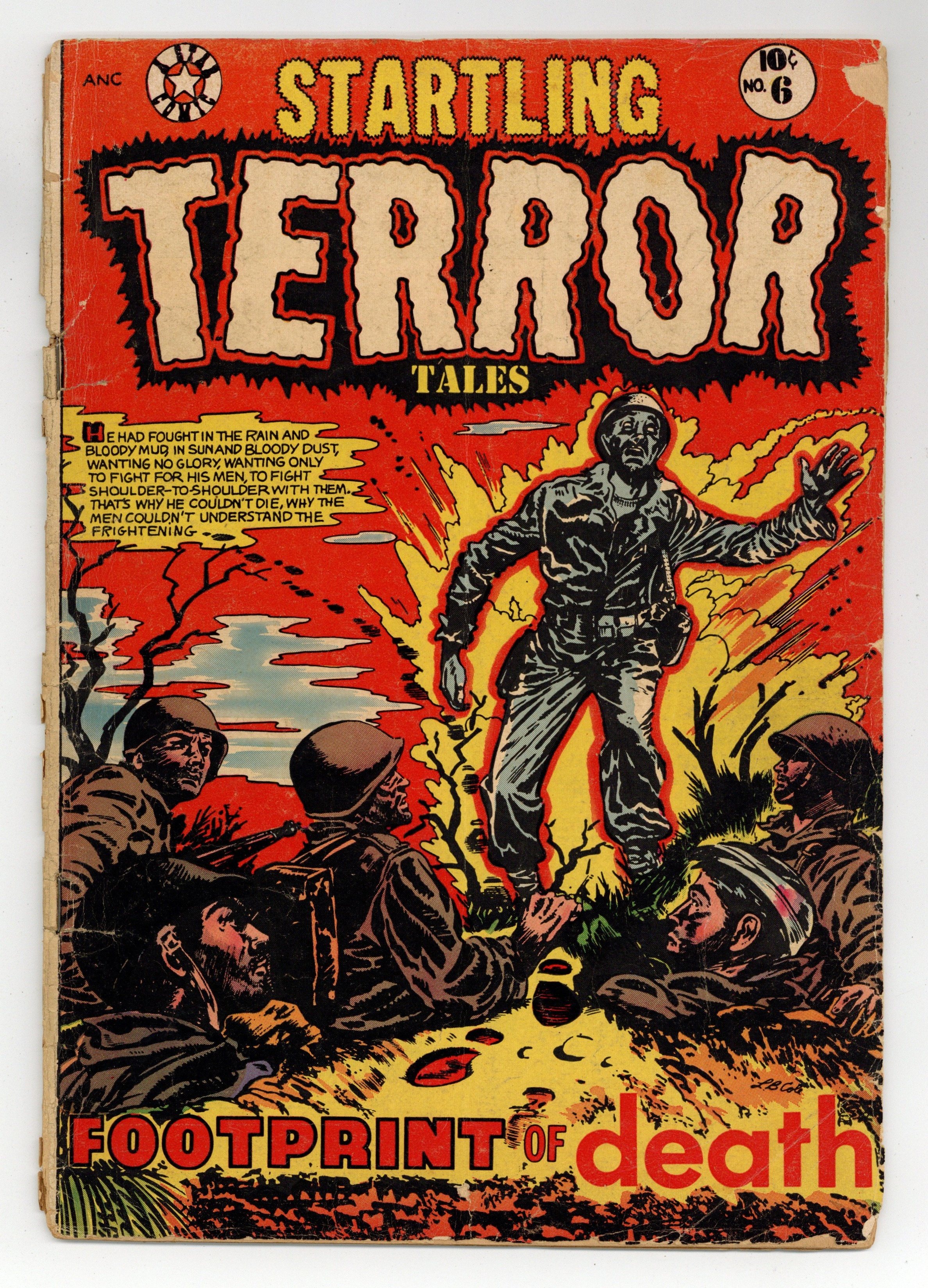 Cover by L. B. Cole. Pre-Code horror and crime comics from L. B. Cole's Star Publications. Soldiers on the battlefield are aided by the spirit of a dead comrade. Clare Mangin uses poison to collect insurance policies on her hapless husbands. The so-crazy-it-must-be-true story of the stealing of the steamship SS Ferret from Scotland to Australia in 1880. Footprint of Death; Killer at Large; The Witch of Terror; The Weird Murder; The Saga of the Slaughter at Sea. 36 pages, Full Color. Cover price $0.10. Grade: FR 1.0 explanation of grade Condition: Used (collectible)