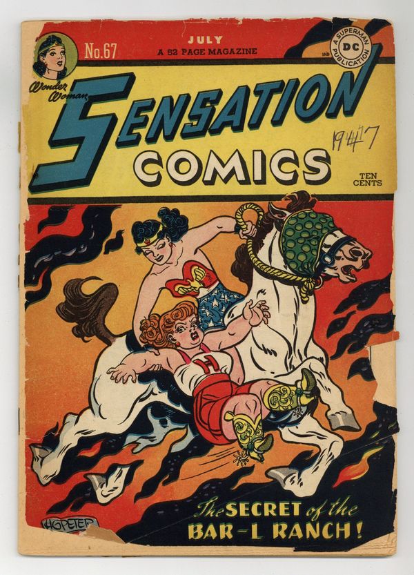 Cover art by Harry G. Peter. The Secret of the Bar-L Ranch starring Wonder Woman and Daredevil Dix, script by William Moulton Marston (as Charles Moulton), art by Harry G. Peter. Yearning For Learning starring Little Boy Blue, art by Frank Harry. Willy Nilly story, art by Frank Harry. Threat To the World? starring Sargon the Sorceror, art by Paul Reinman. The Terror of Stone Mountain starring Wildcat, art by Mort Meskin. 52 pages, full color. Cover price $0.10. Grade: PR 0.5 explanation of grade Condition: Used (collectible)