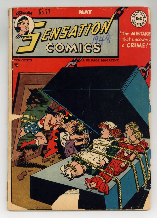 Wonder Woman stars in "Tress's Terrible Mistake"; Little Boy Blue and the Blue Boys star in "The Secret Crimes"; Sargon the Corcerer stars in "The Silent Crooks" (art by Paul Reinman); and a Willy Nilly story. One-page Tootsie Roll ad, "Captain Tootsie Tames a Tornado" (art by C.C. Beck). 52 pgs. Cover price $0.10. Grade: GD- 1.8 explanation of grade Condition: Used (collectible)